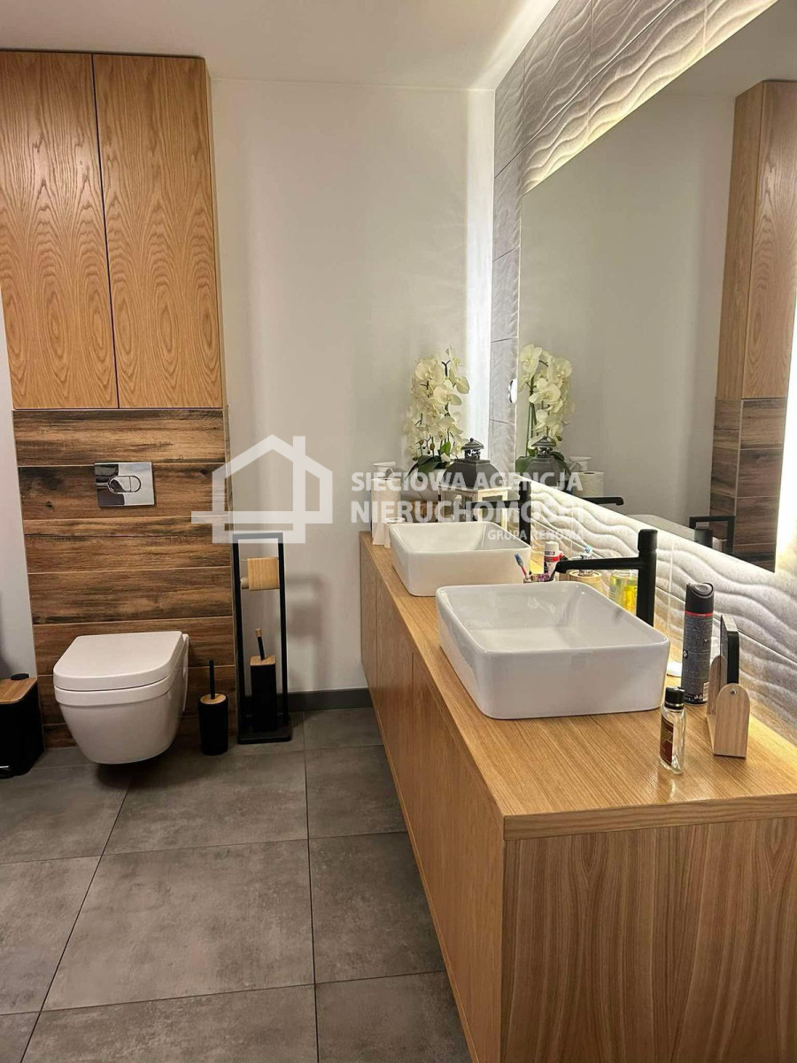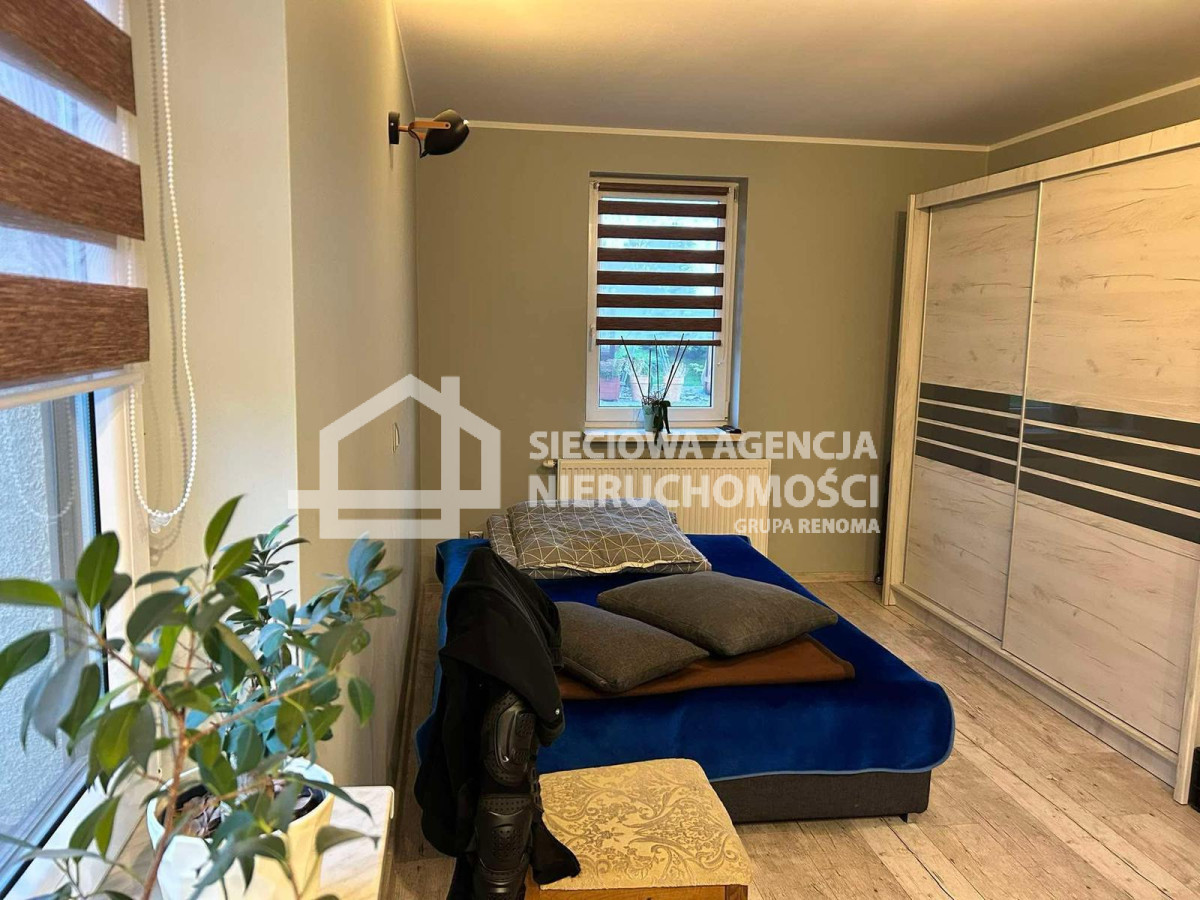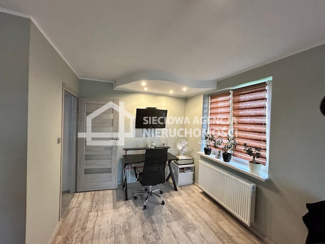 Zamontowany domofon, okablowanie pod monitoring, podłączony internet, zamontowane drzwi wewnętrzne do pokoi.
