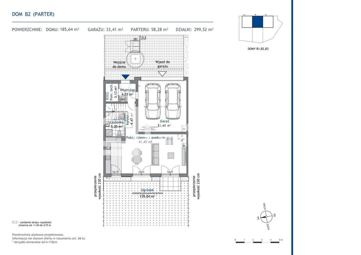 Dodatkową powierzchnię stanowi ogródek - 139,04m2 (ekspozycja wschód-zachód)
