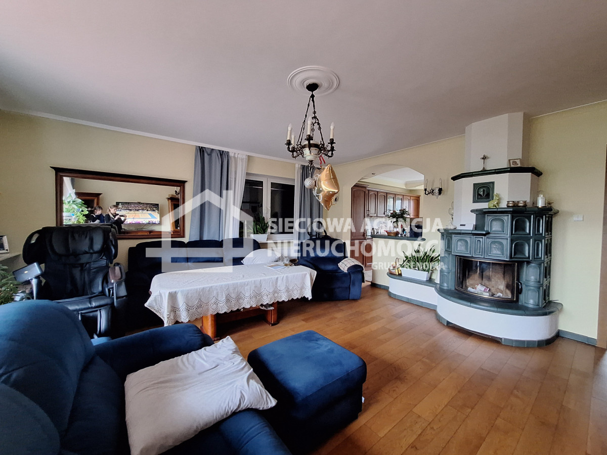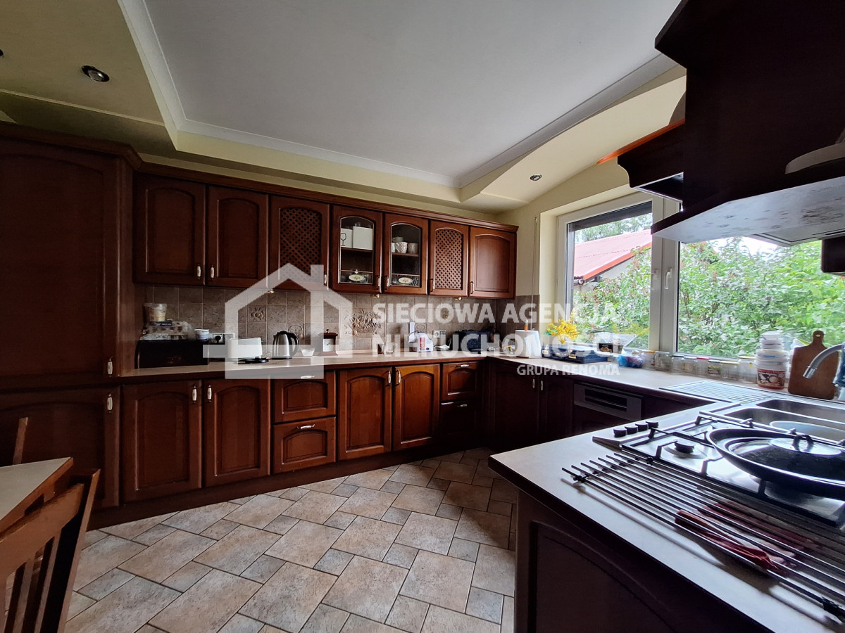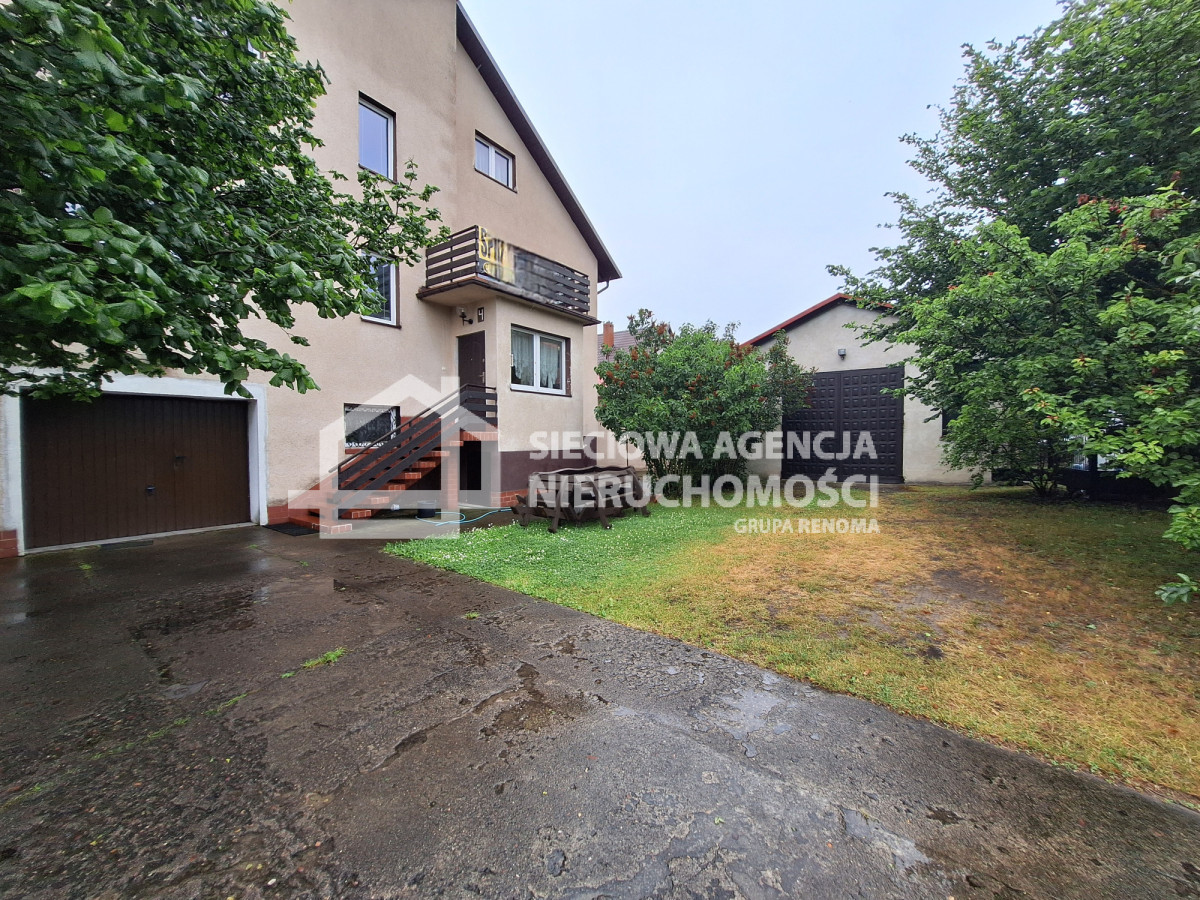 Dom składa się z 8 pokoi,( część z balkonami), 3 łazienek, kuchni, piwnicy, z pomieszczeniami gospodarczymi, garażem, strychu o powierzchni około 100 metrów, który można pomysłowo zaadaptować.