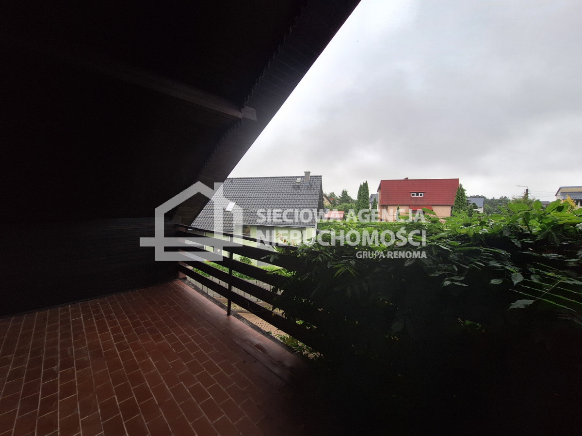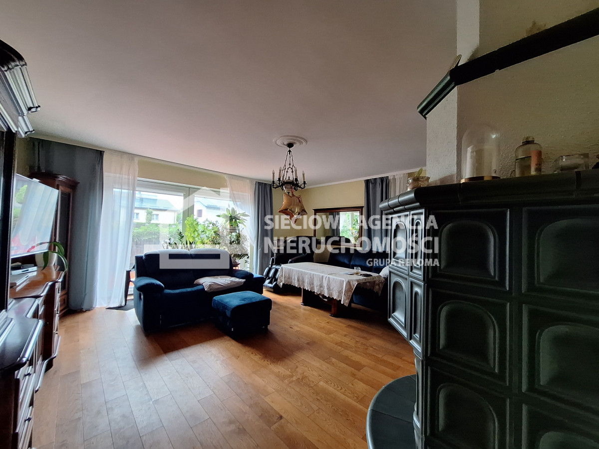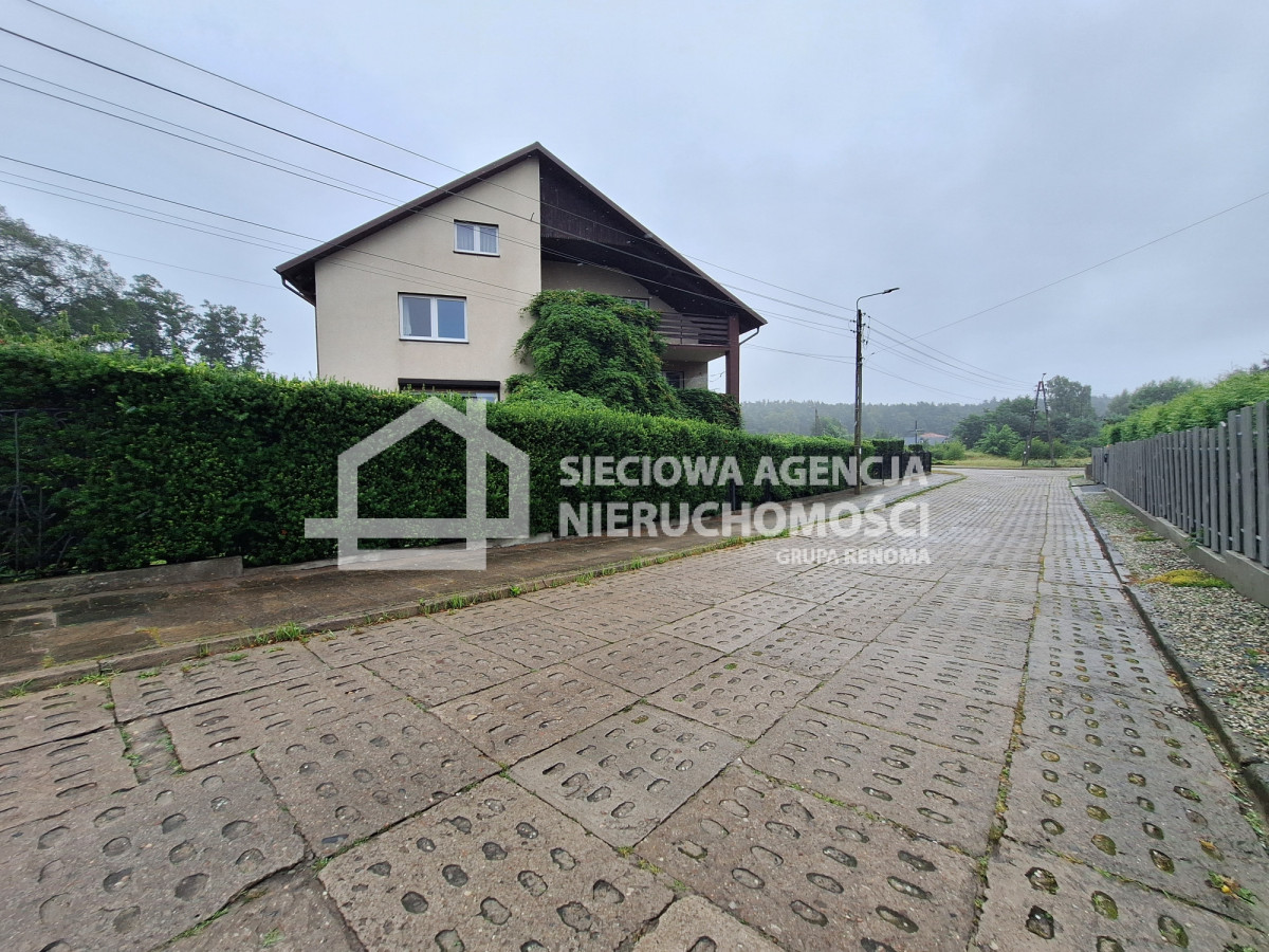 Dom składa się z 8 pokoi,( część z balkonami), 3 łazienek, kuchni, piwnicy, z pomieszczeniami gospodarczymi, garażem, strychu o powierzchni około 100 metrów, który można pomysłowo zaadaptować.