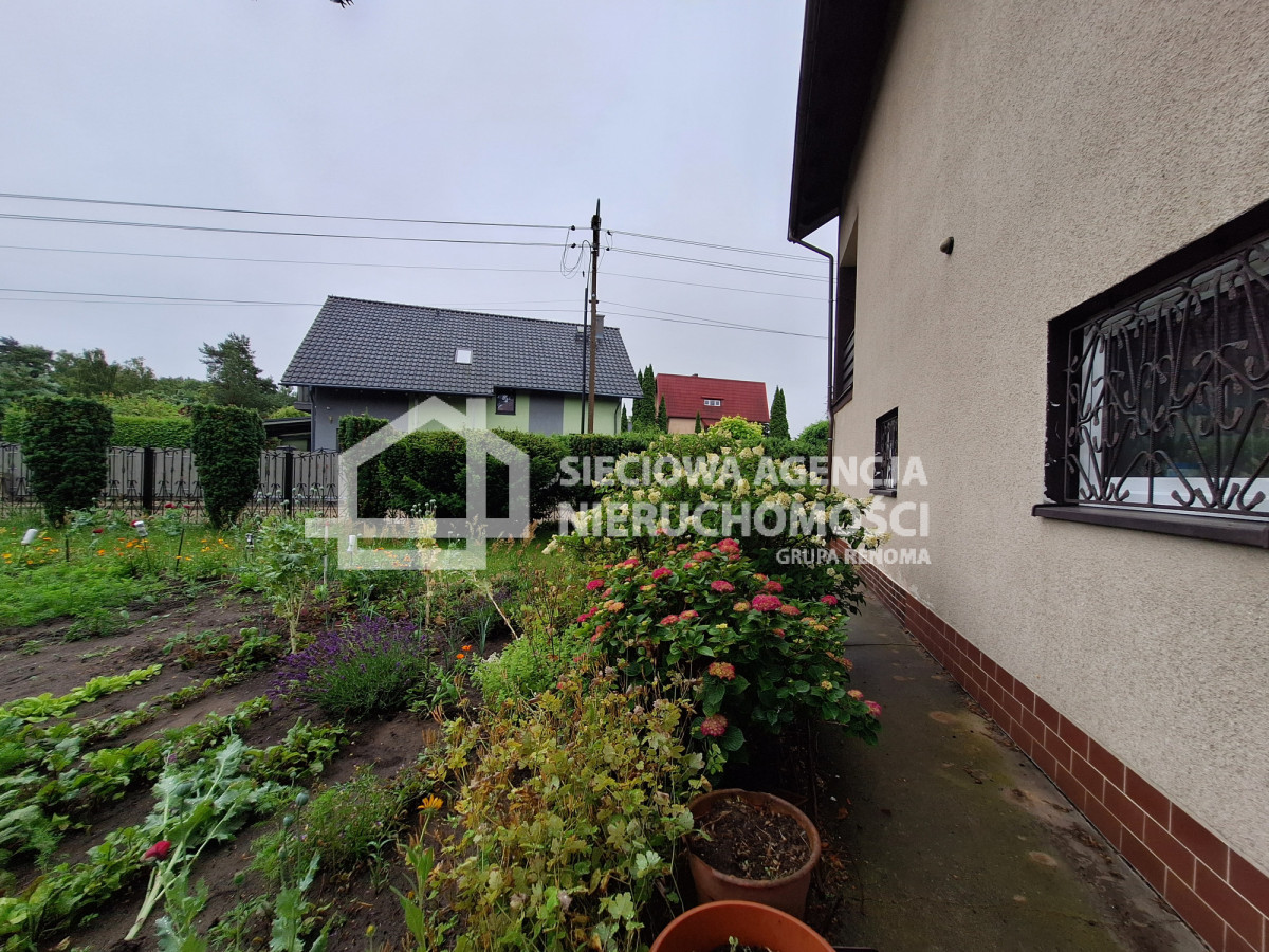 Piękna, zadbana działka z ogrodem o powierzchni 1400 m2, w całości ogrodzona. Na działce znajduje się budynek gospodarczy o powierzchni 100 metrów, który służy także jako dodatkowy garaż na 2 auta. Możliwość dokupienia ogrodzonej działki tuż przy posesji.