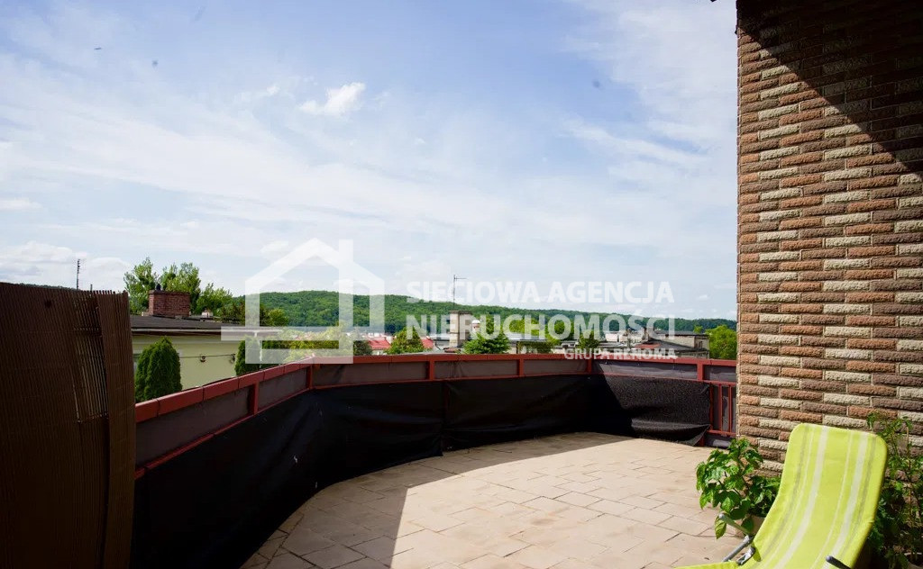 Wyjście na górny taras (42 m2) a z niego widok na panoramiczny widok na miasto i Trójmiejski Park Krajobrazowy.
