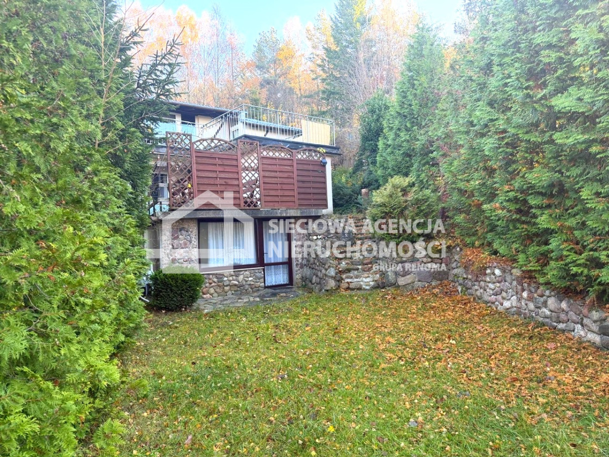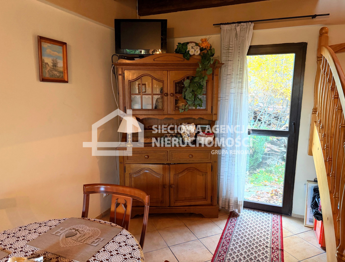Gościniec Malinówka ( 100 m), przystanek kolejowy ( 200 m) i wyciąg narciarski Koszałkowo ( 800 m)Domek charakteryzuje się funkcjonalnym podziałem, na parterze jest przestronna kuchnia, idealna do przygotowywania posiłków dla całej rodziny, z kuchni i salonu jest wyjście na duży taras z pięknym widokiem na okolicę, w salonie stoi piec kaflowy, dodatkowo na parterze jest oddzielny pokój.