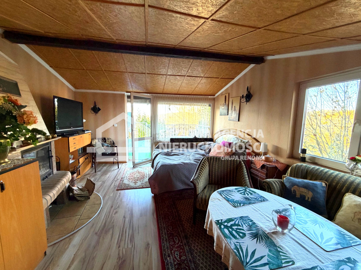 Na piętrze są dwie wygodne sypialne, z jednej z nich jest wyjście na taras, pomieszczenia te ogrzewane są kominkiem.