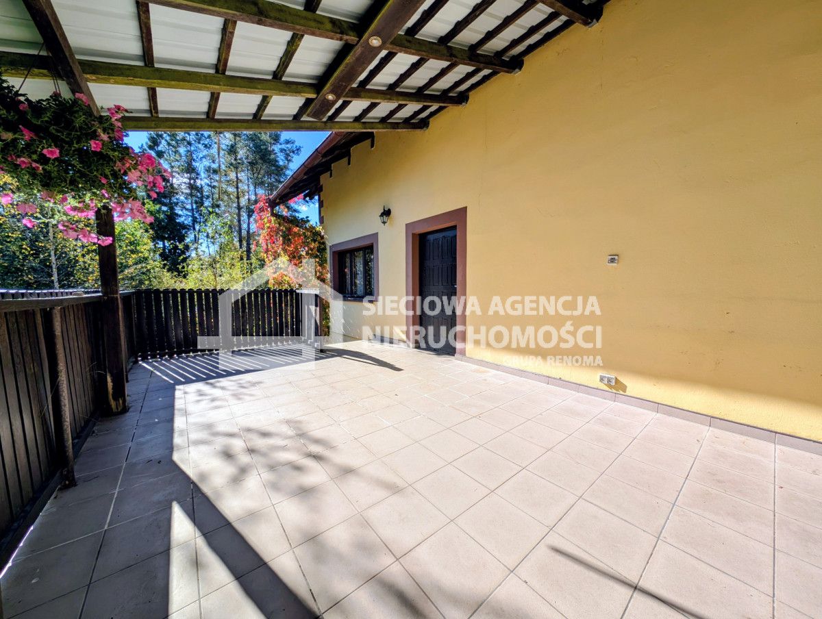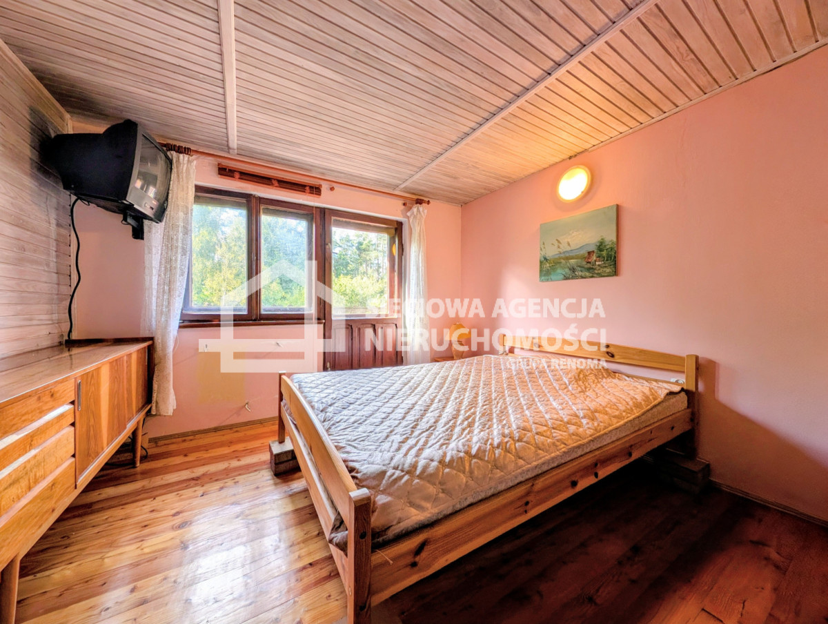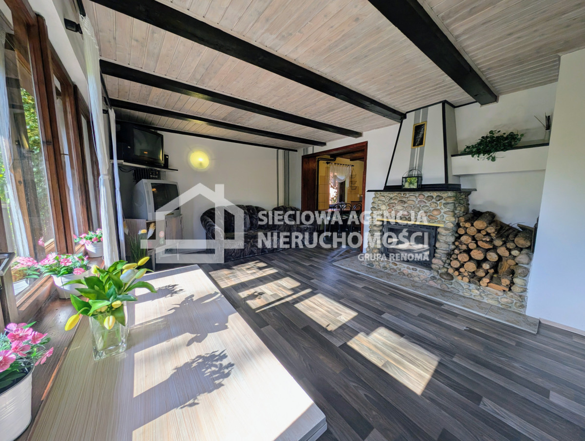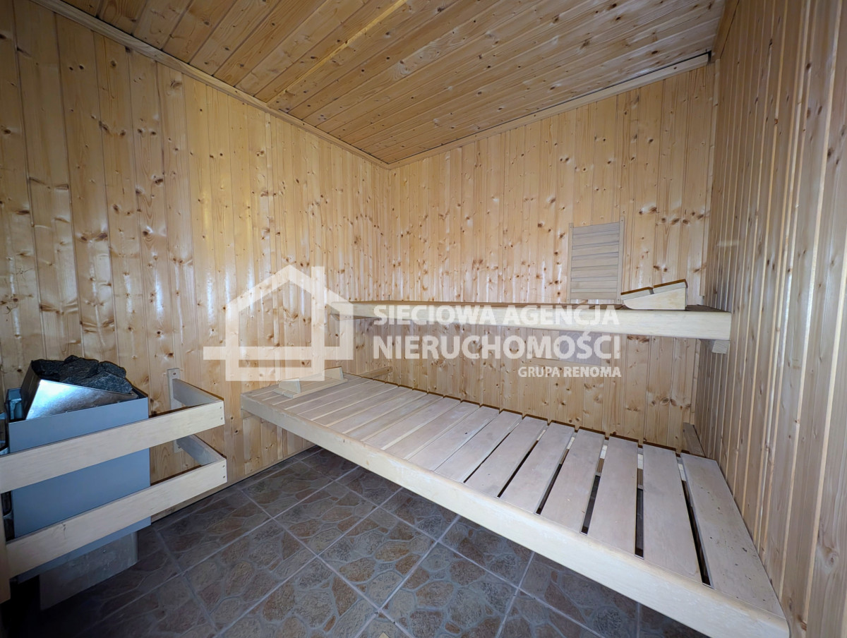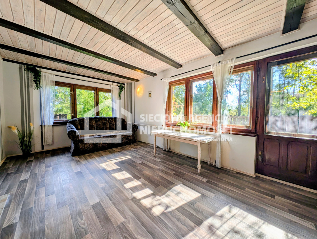 saunę fińską, w której odprężysz się po dniu pełnym wrażeń.Na działce stoi też mały drewniany domek dla dzieci, a tuż obok posesji rozciąga się łąka - miejsce na rodzinne gry, ognisko albo dodatkowy parking.