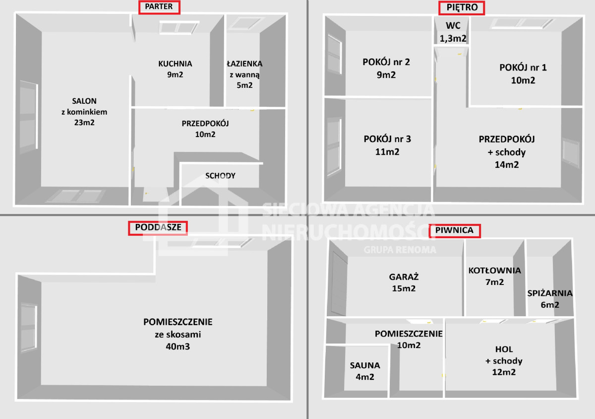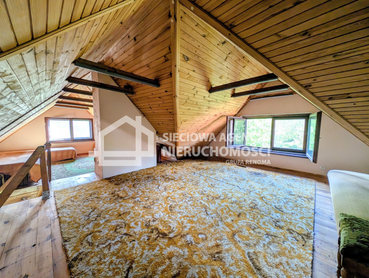 Na najwyższej kondygnacji znajduje się otwarta przestrzeń poddasza - niska, ale niezwykle klimatyczna. To miejsce, które właściciele przeznaczali dla swoich dzieci i wnuków na wspólne zabawy, tworząc tam ich własny "tajemniczy świat". Poddasze sprawdzi się także jako dodatkowa przestrzeń do przechowywania.