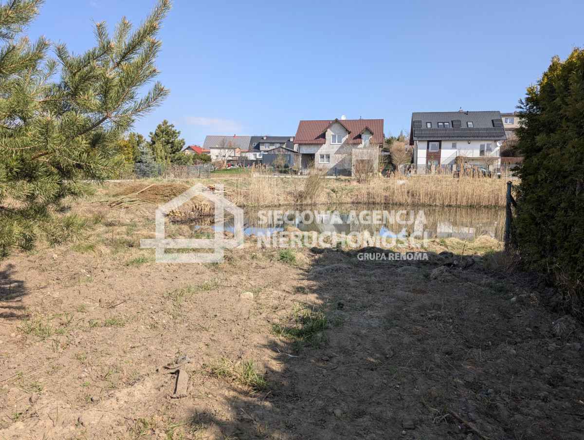Nieruchomość w kształcie prostokąta, wymiary: szerokość ok. 20 m, długość 38 m, płaska, w części ogrodzona, dojazd drogą gminną - płyty jumbo. Za działką nieduży stawek.