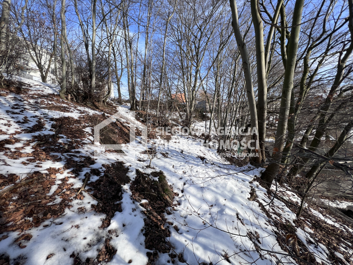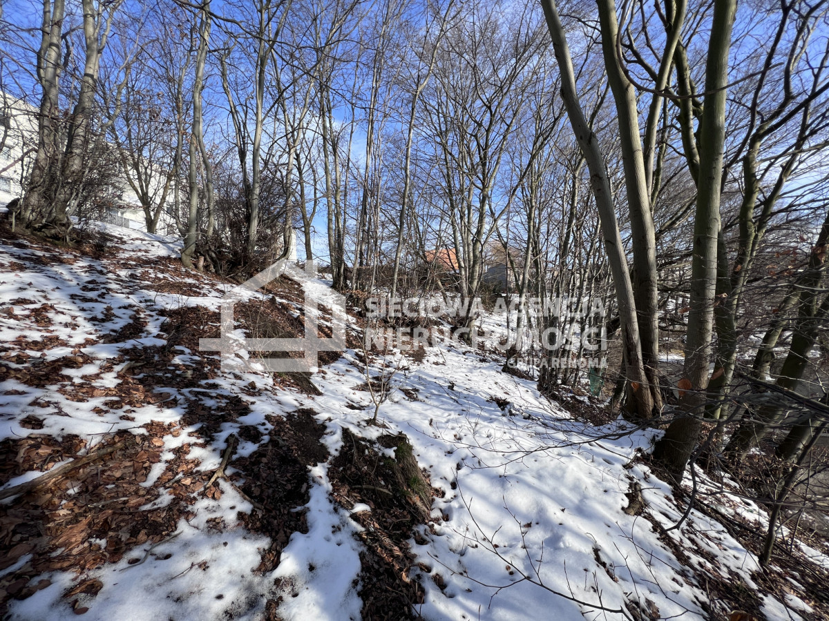 Teren nachylony, zalesiony.