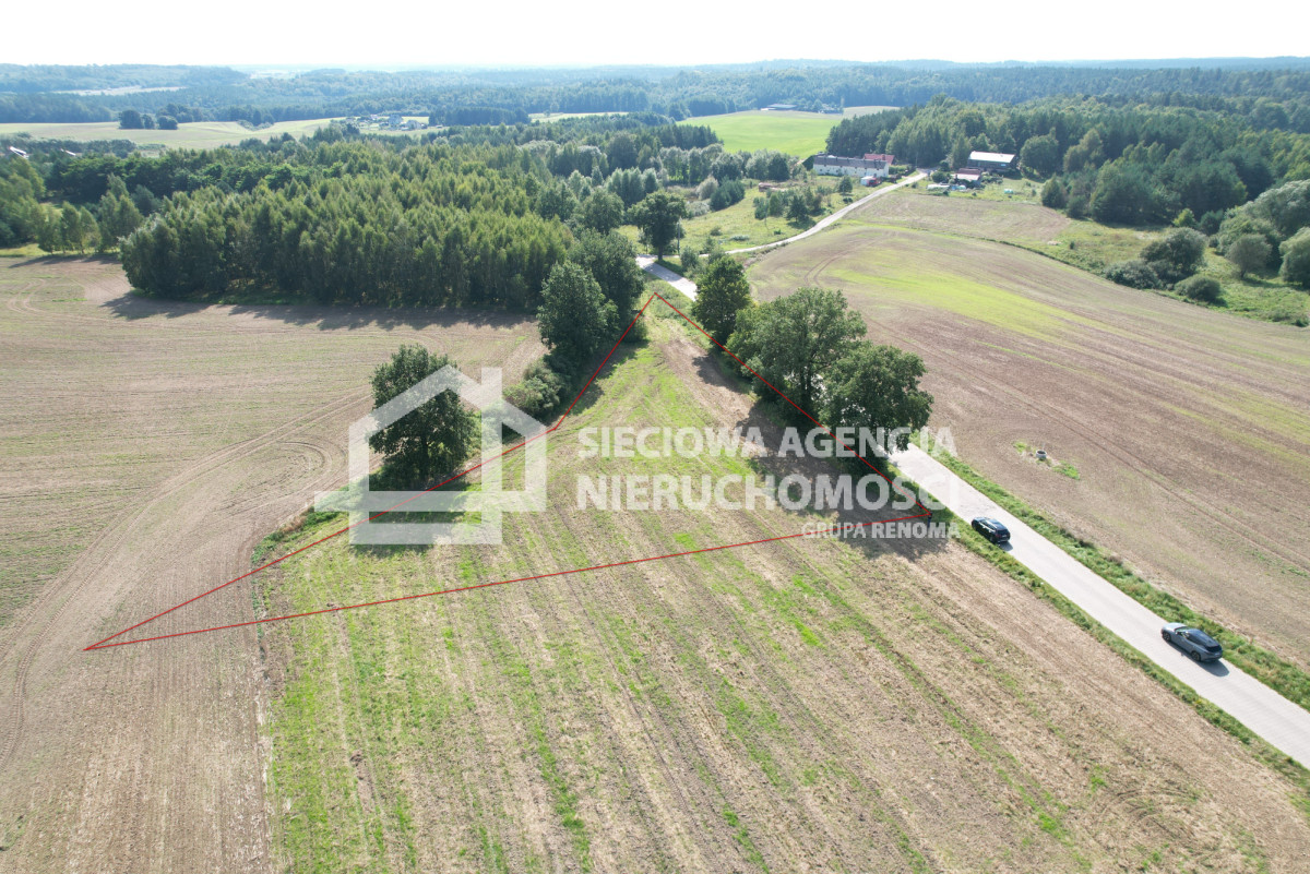 Nieruchomość w kształcie zbliżonym do trójkąta, od strony drogi lekko pochylona w dalszej części płaska, położona przy drodze gminnej wyłożonej trelinką.