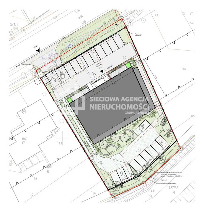 • Teren płaski, prostokątna ok. 35 m x 48 m, obwód 165 m