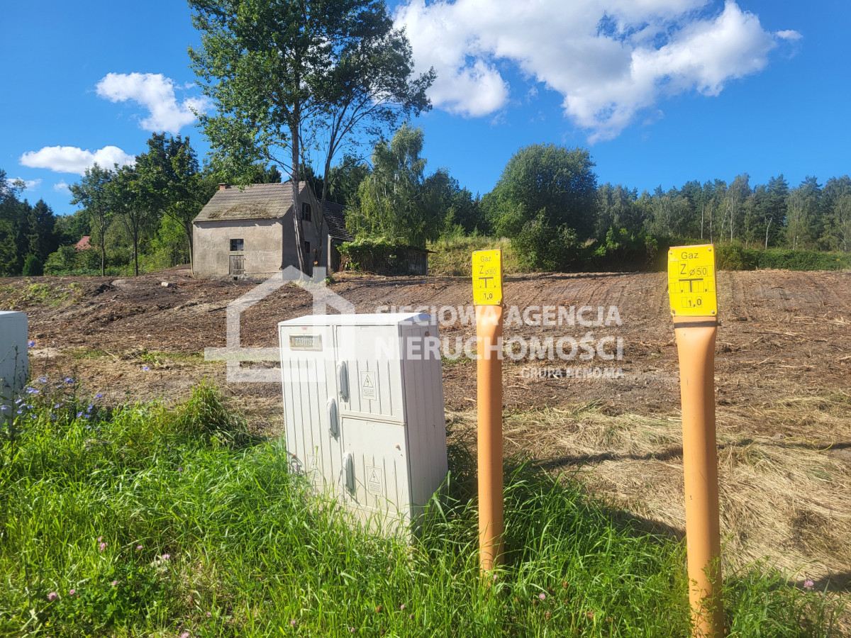 Ukształtowanie - w części płaska, przy drodze lekko nachylona, niedaleko za działkami las. Przy działce dostępne są media : woda, prąd, gaz