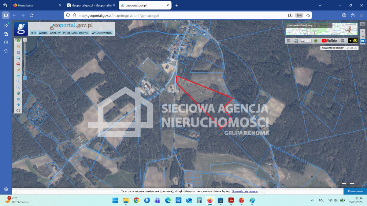 Działka o powierzchnia ponad 42 000m2 , około połowa działki to las. Dla działki zostały wydane warunki zabudowy na 16 budynków mieszkalnych jednorodzinnych-parterowych z poddaszami użytkowymi i z możliwością realizacji garaży o powierzchni zabudowy maks. 120 m2.