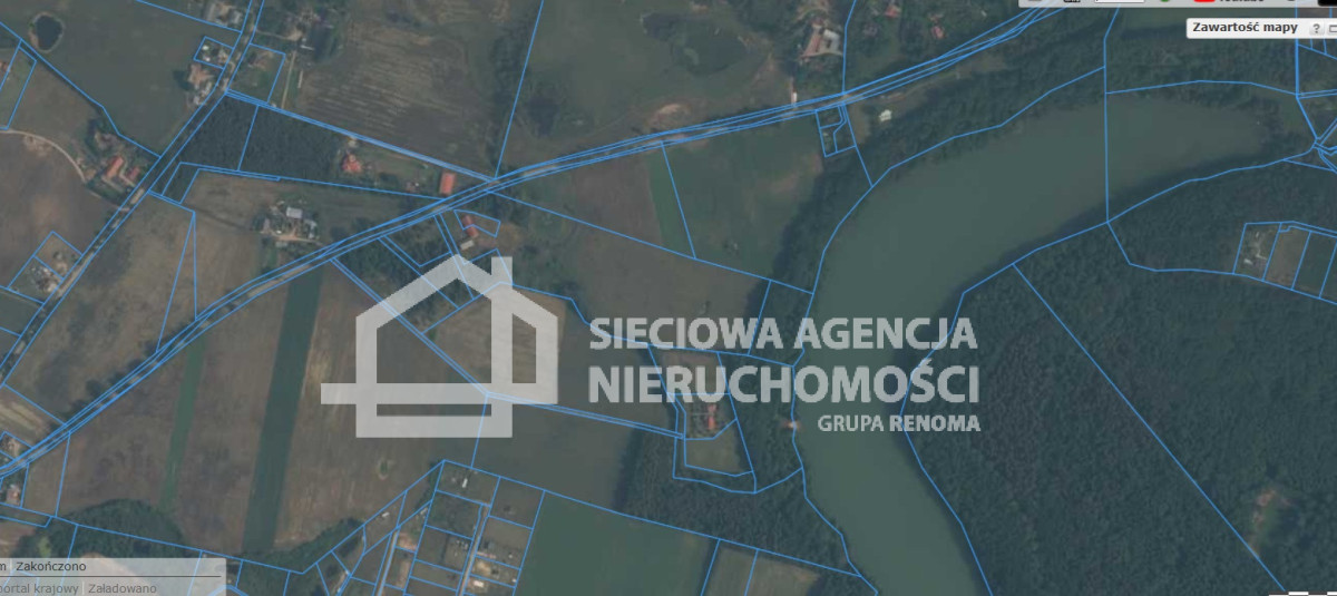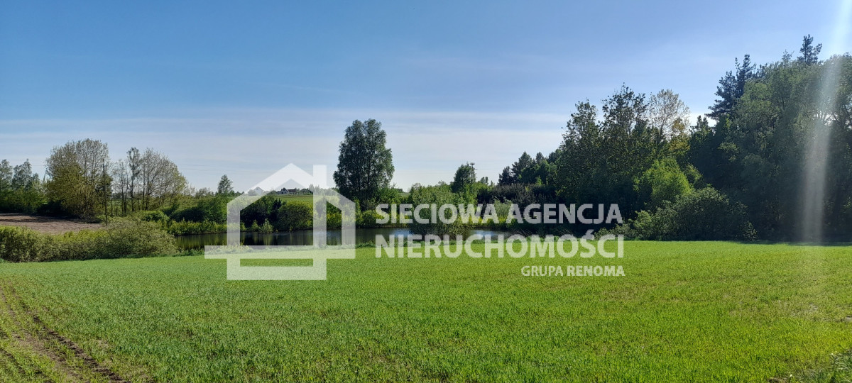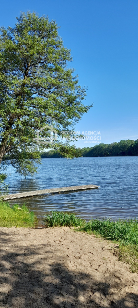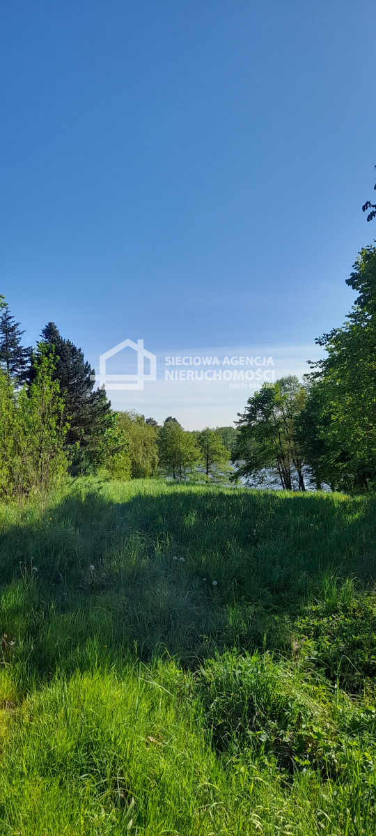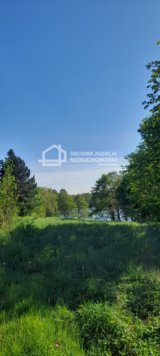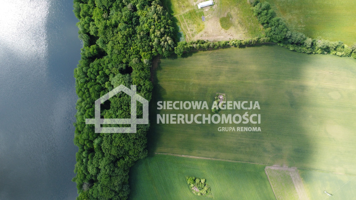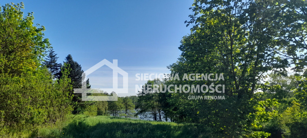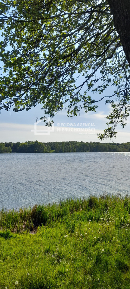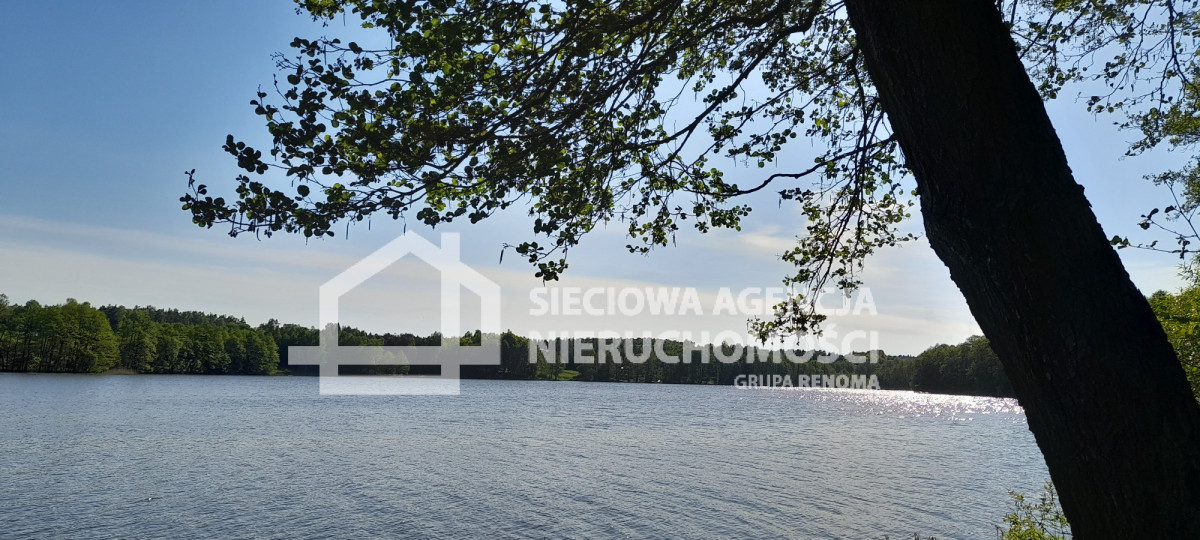 Działka z linią brzegową jeziora Sobąckiego i ze stawem.