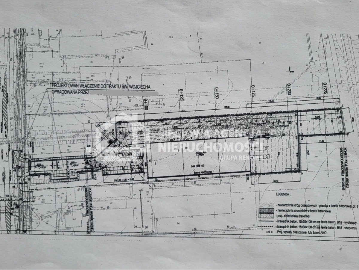 Działka na której stoi obiekt składająca się z trzech wydzielonych działek o łącznej powierzchni 7773 m2 zabudowana parterową halą magazynową o wysokości 7,5m z bramami wjazdowymi zarówno dla dużych samochodów ciężarowych typu TIR jak również dla mniejszych pojazdów dostawczych. Hala magazynowa wyposażona jest również w "sloty "załadunkowe dla dużych pojazdów transportowych. Całkowita powierzchnia magazynu wynosi 1170m2. W części magazynowej wydzielony został garaż (warsztat) służący do przeglądów samochodów, wyposażony w węzeł sanitarny