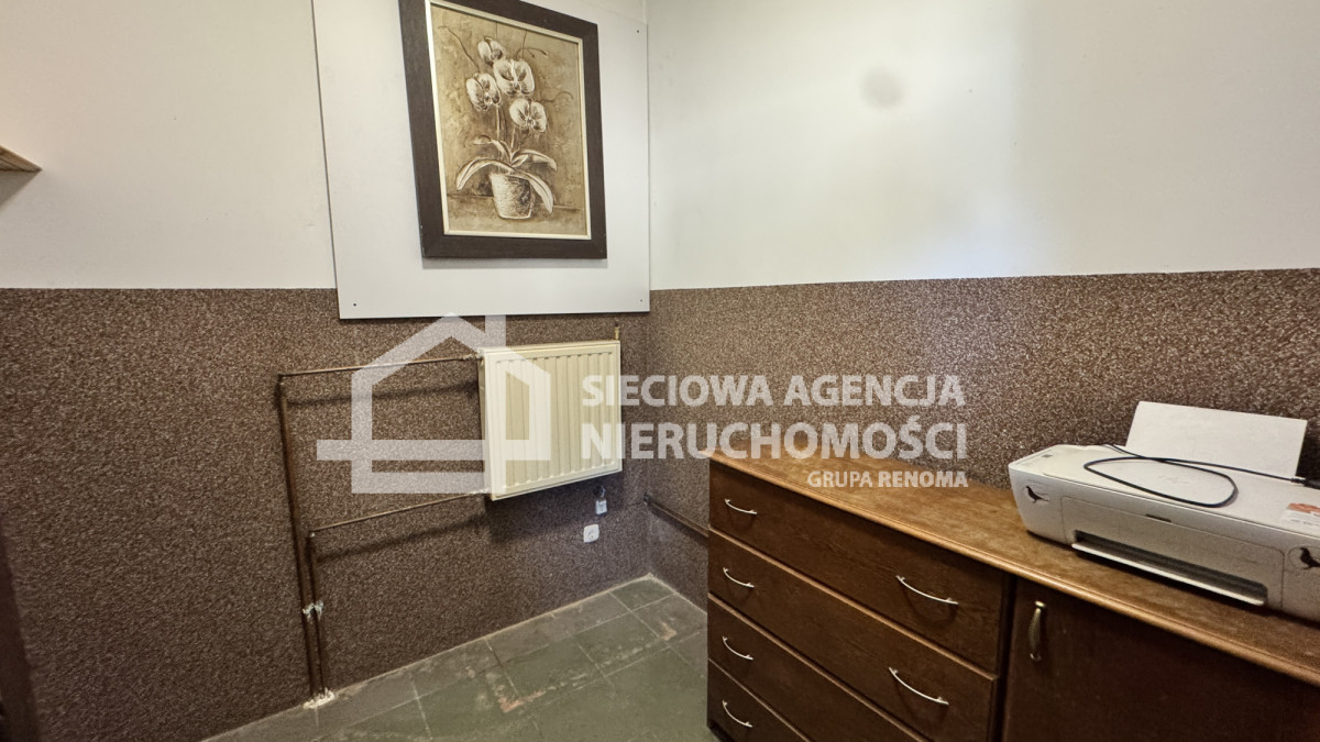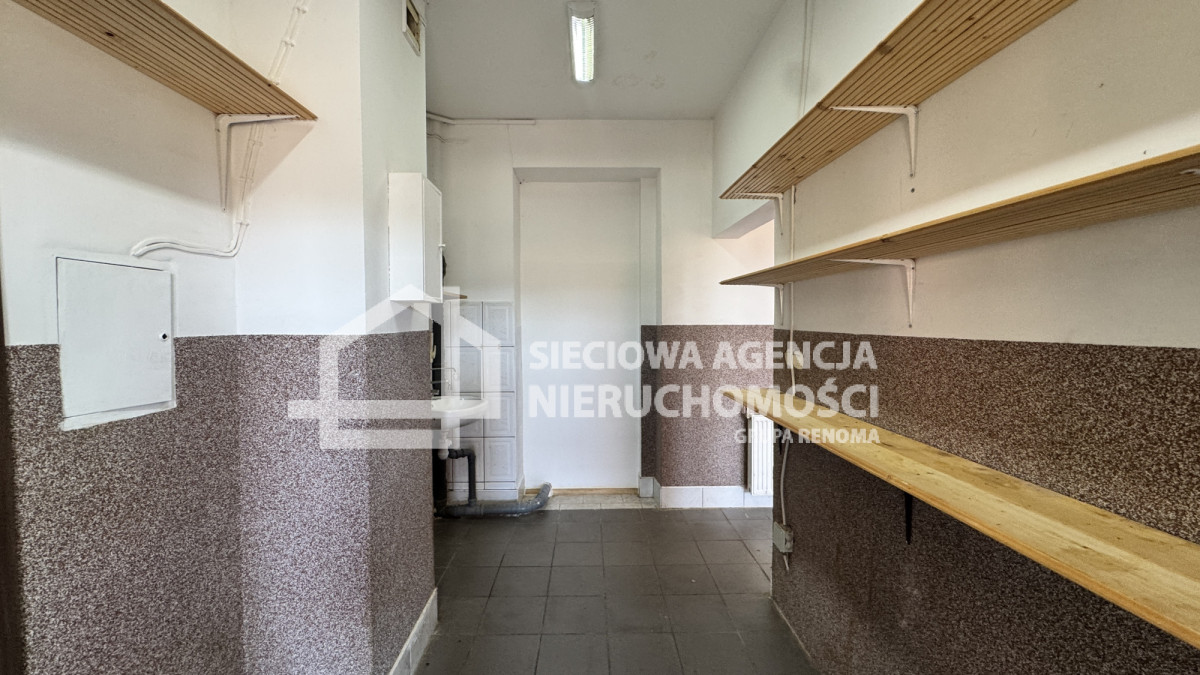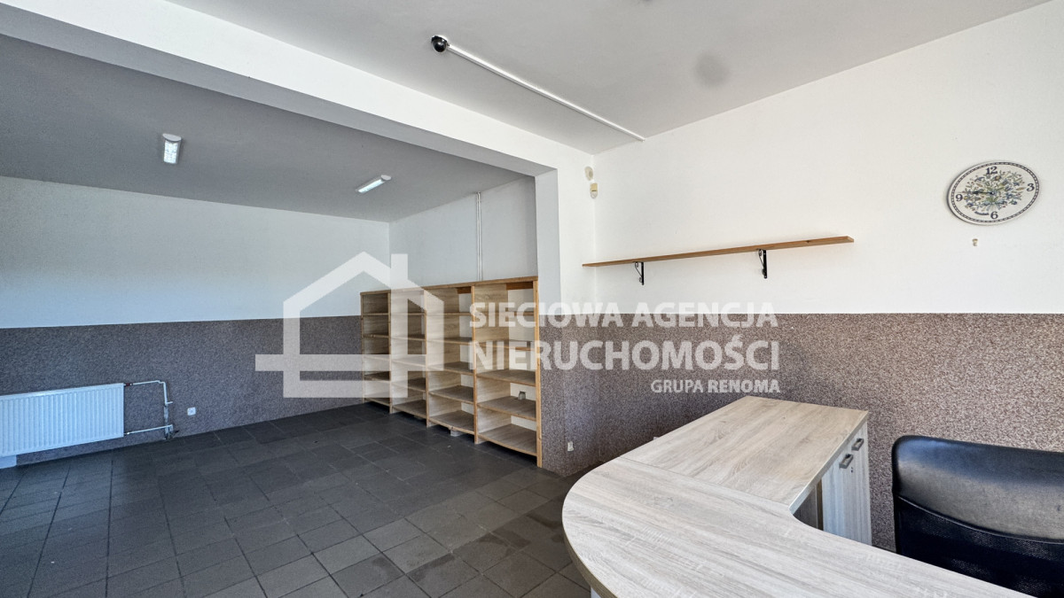 Lokal składa się z pomieszczenia open space, pomieszczenia biurowego, zaplecza socjalnego, pomieszczenia gospodarczego i łazienki z kabiną prysznicową i WC.