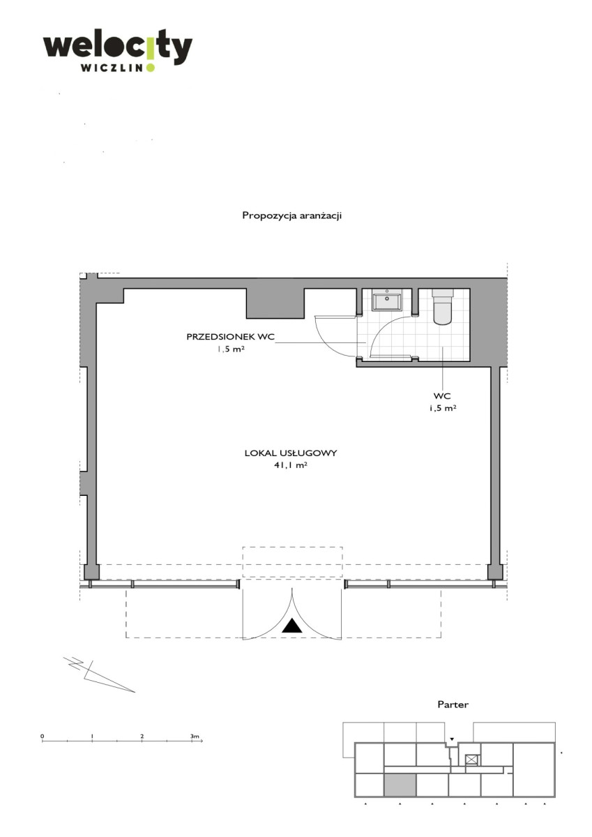 Lokal znajduję się przy głównej ulicy, na nowym osiedlu z 2025r., Welocity.