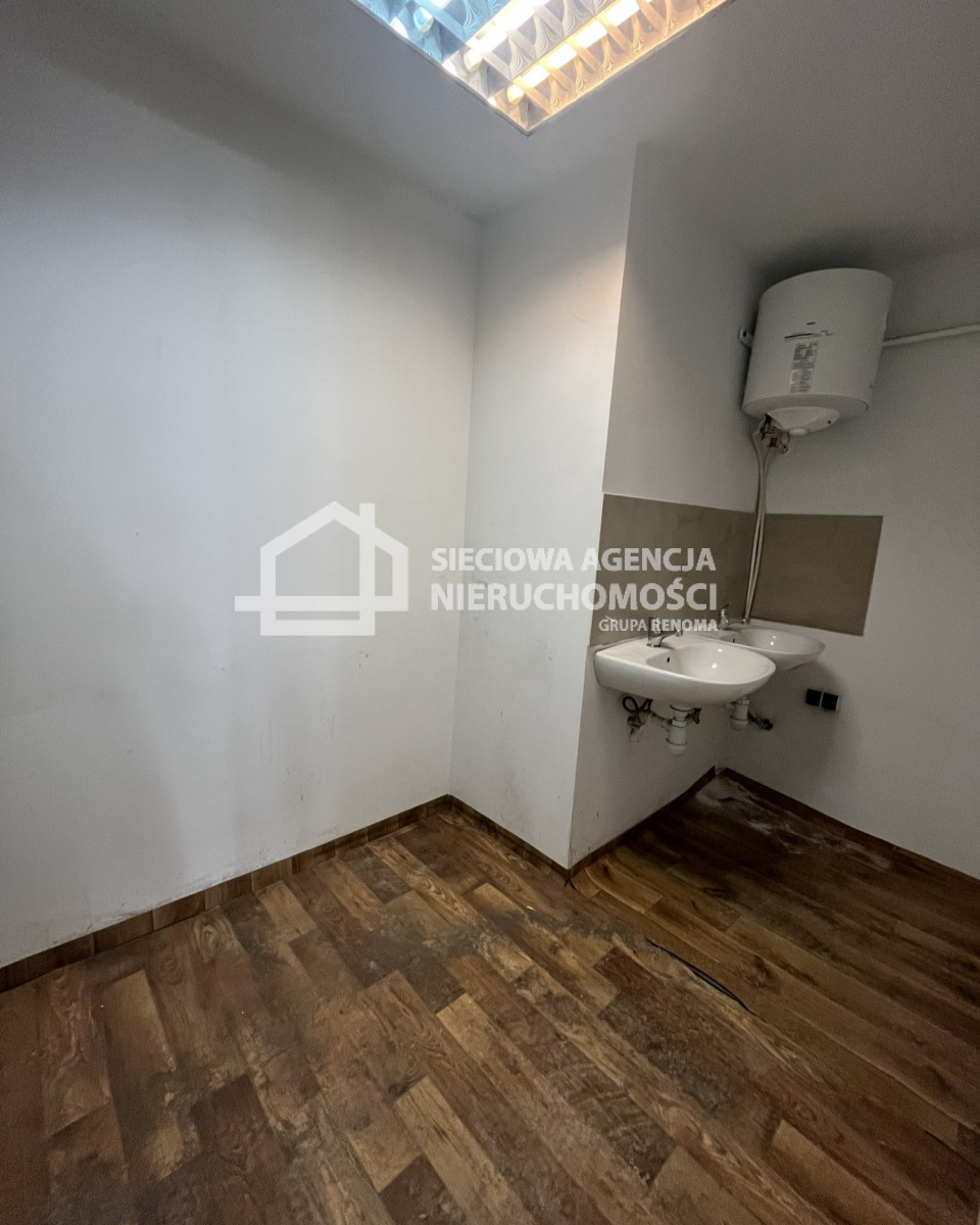 Nieruchomość przystosowana pod warsztat samochodowy składająca się z dużego, głównego pomieszczenia z wnęką po lakierni, pomieszczenia socjalnego, biurowego oraz dwóch toalet.