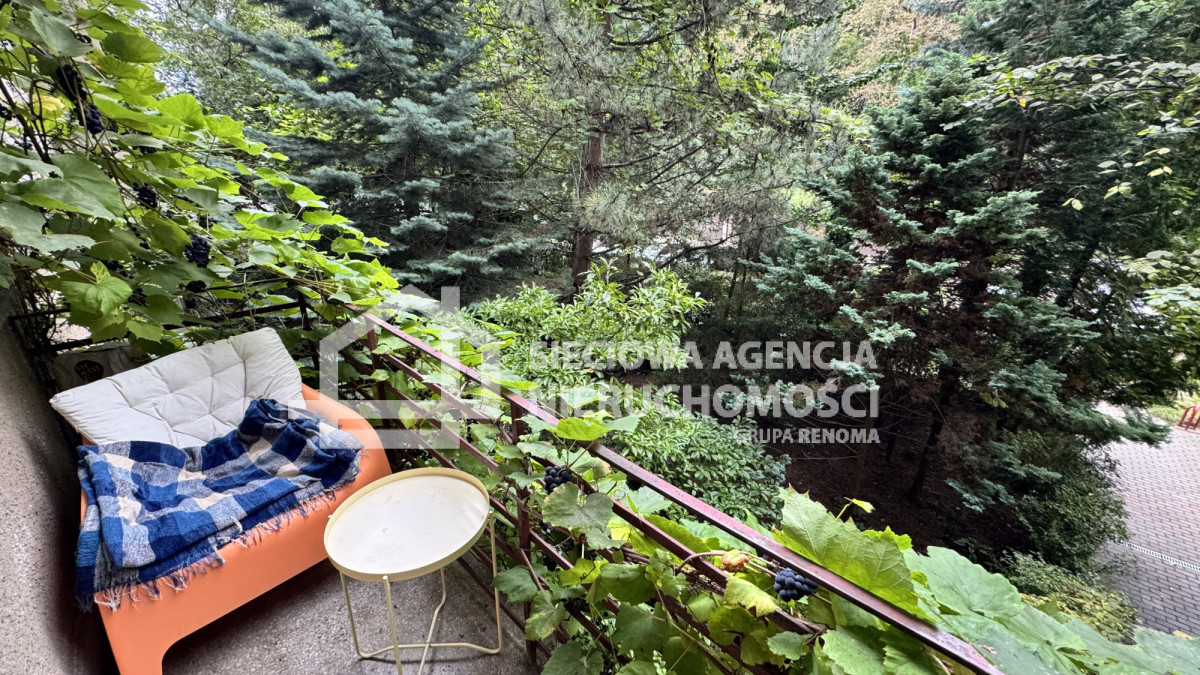 Z kuchni wyjście na balkon a z niego widok na zieleń.