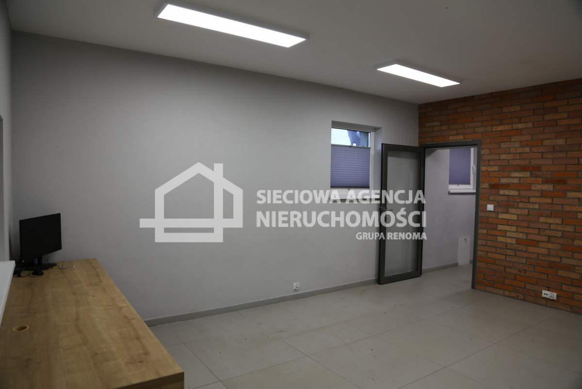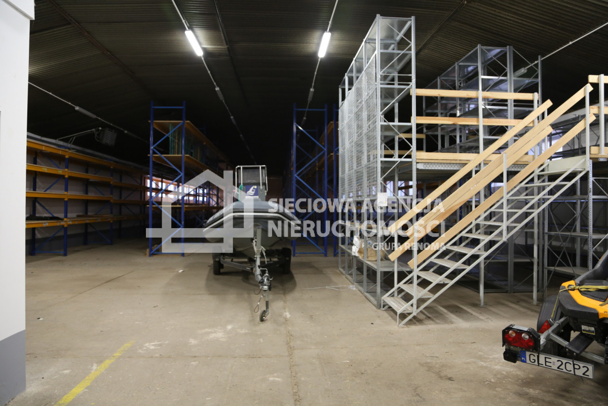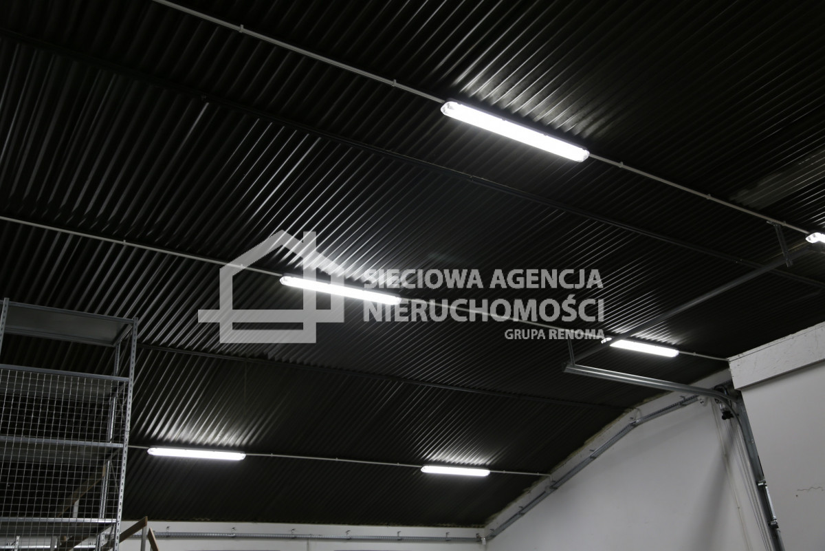Hala po remoncie, z dużą brama wjazdową 4.5 m.Hala magazynowa wraz z kuchnią i łazienką, alarm, monitoring, ogrzewanie na hali i w biurze, możliwość wynajęcia z regałami widocznymi na zdjęciu.