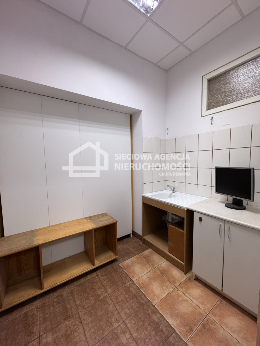 Lokal składa się z 3 pomieszczeń (18 m2,14 m2 i 13 m2), korytarza, toalety oraz zaplecza socjalnego.