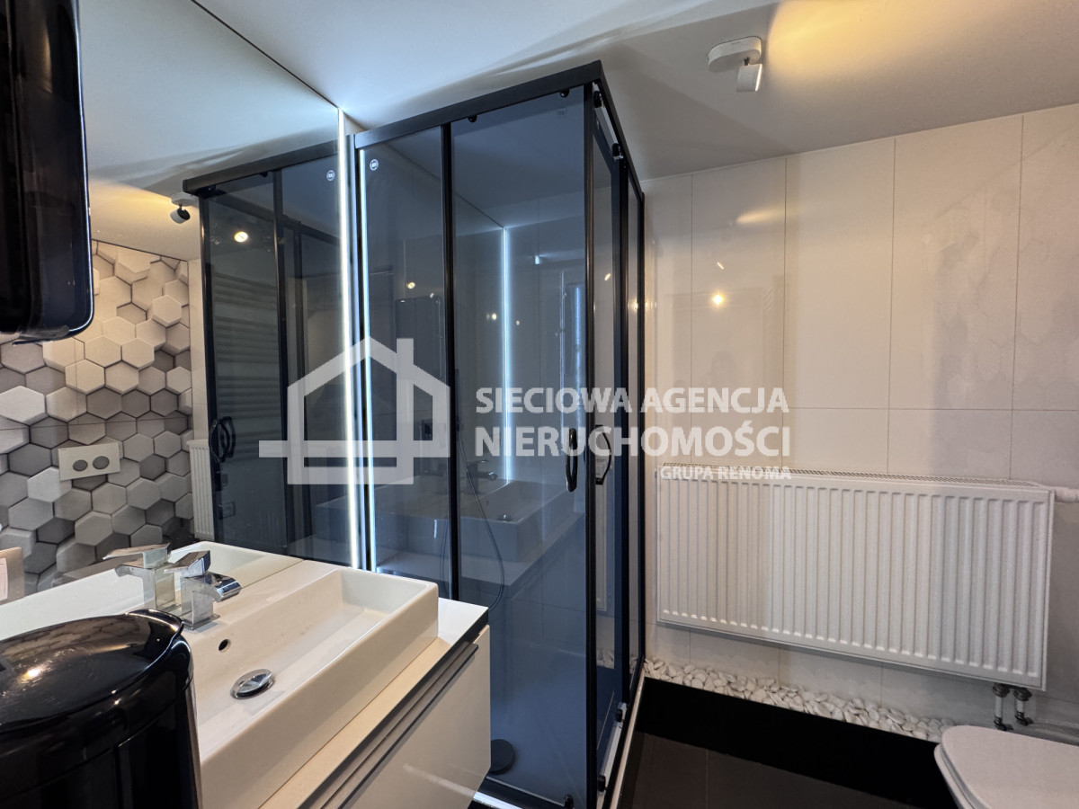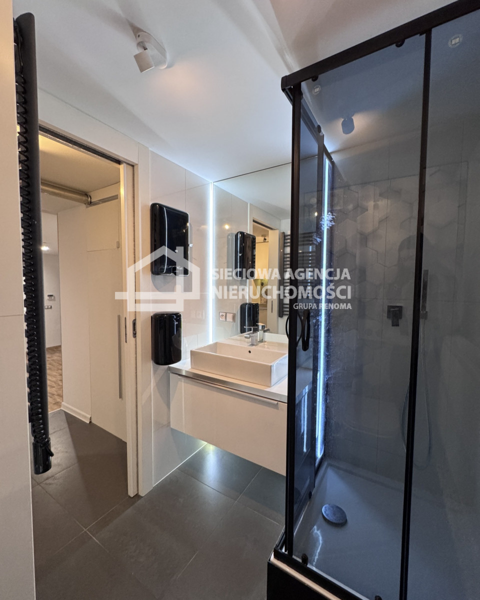W skład lokalu wchodzą trzy pomieszczenie główne, zaplecze socjalne, łazienka z kabiną prysznicową i WC holl.