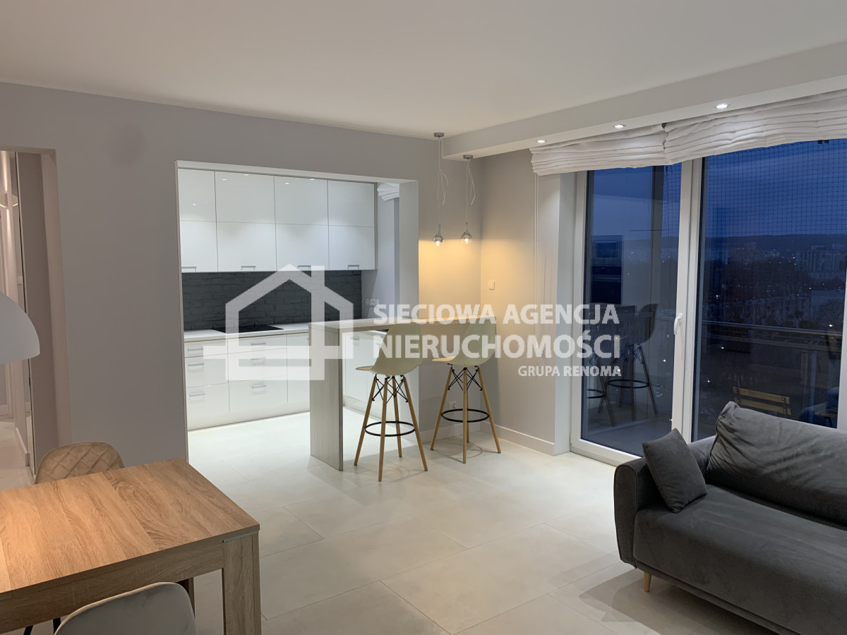 - salon z aneksem kuchennym, z wyjściem na loggię a z niej widok na miasto i morze