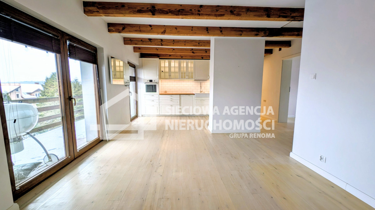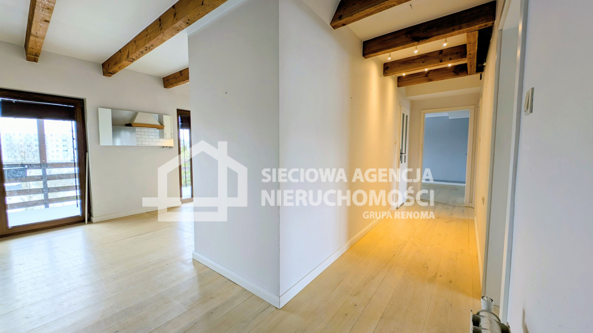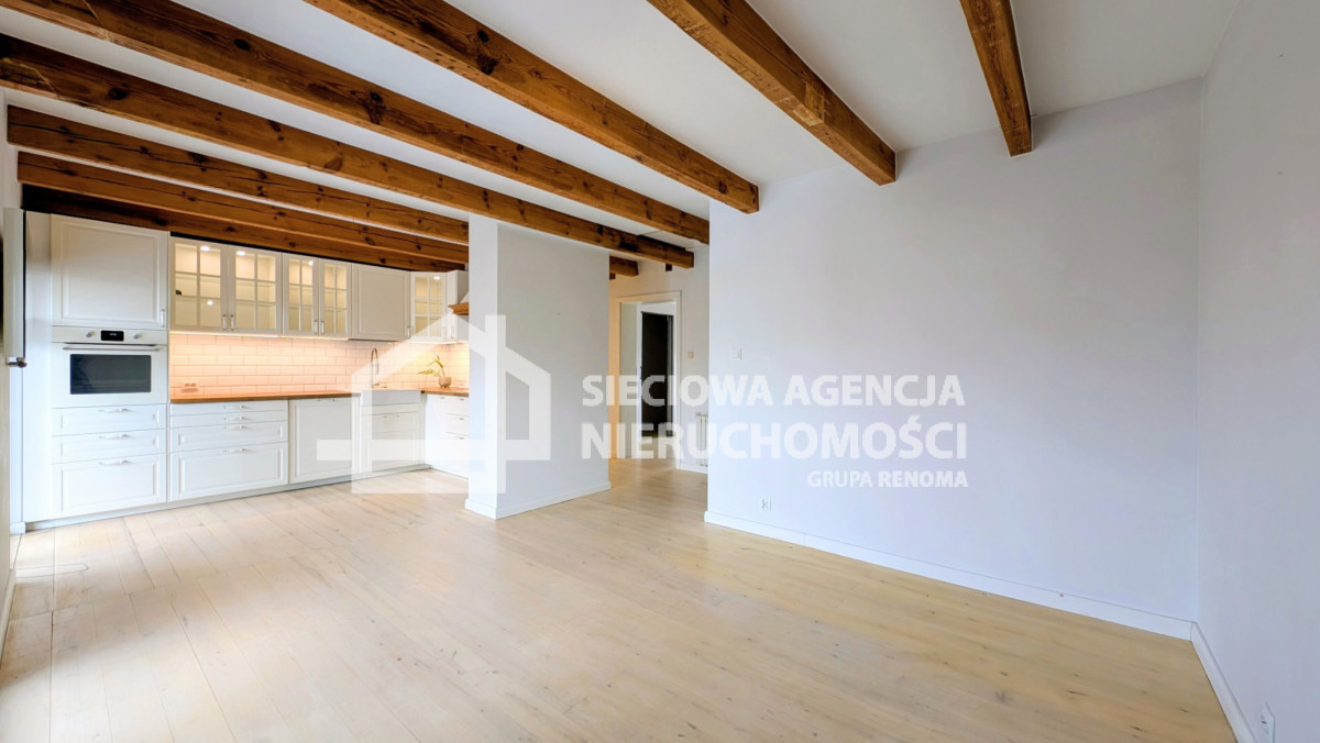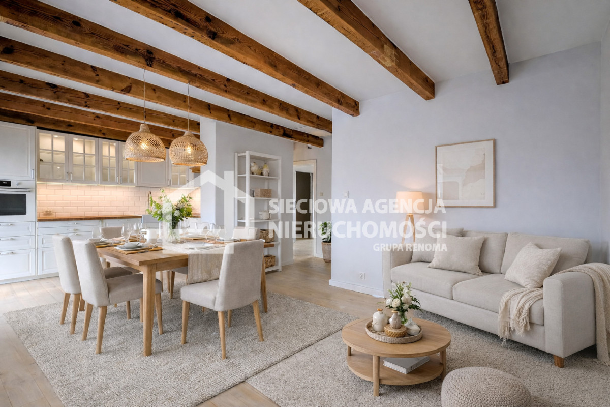 Część zdjęć przedstawia wizualizację wnętrz wykonaną przy użyciu sztucznej inteligencji - mieszkanie sprzedawane jest bez mebli.