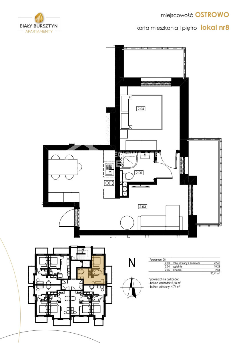 W kameralnym apartamentowcu Biały Bursztyn znajduje się 21 apartamentów dwupokojowych o powierzchniach od 20,31m² do 35,41m².