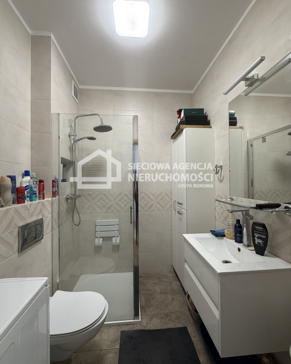 - łazienka z kabiną prysznicową i WC