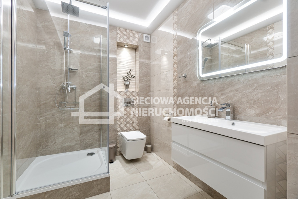 Apartament wykończony jest w unikatowym, ponadczasowym stylu i tworzy niesamowite miejsce do życia.