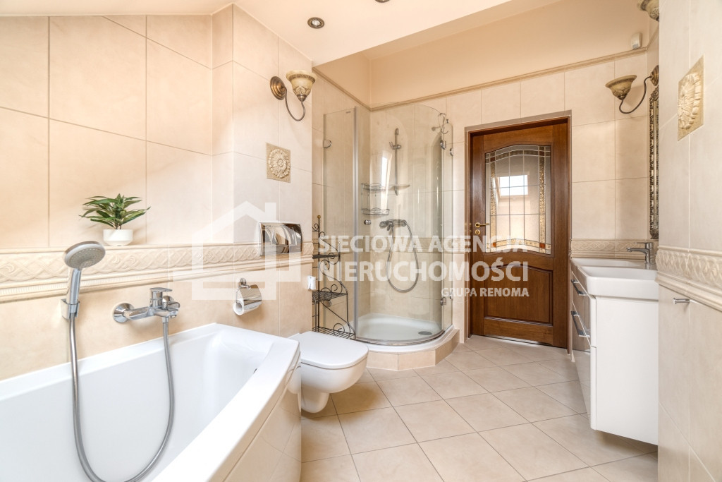 Wyższy standard wykończenia:na podłodze-deska,panele,gres;ściany-glazura,malowane.
