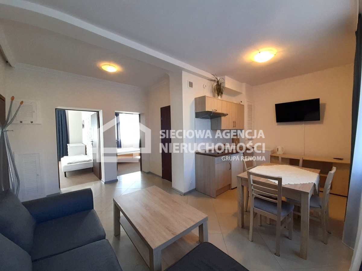 W skład mieszkania wchodzi salon z aneksem kuchennym, dwie sypialnie, łazienka z kabiną prysznicową i WC oraz przedpokój.