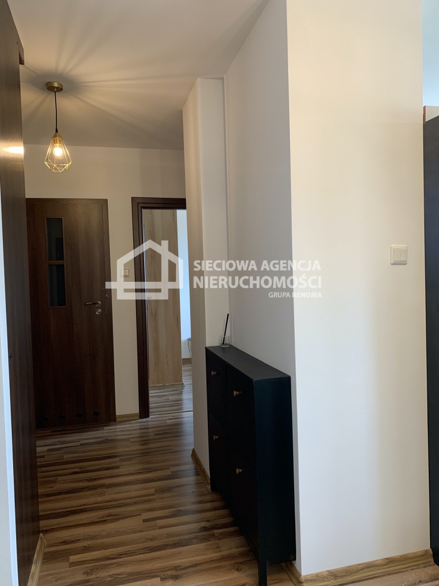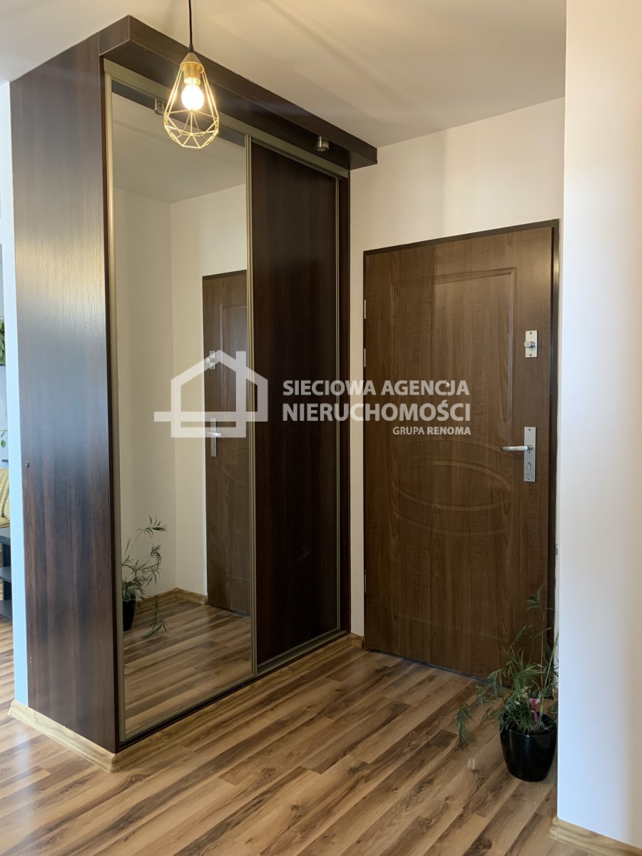 W skład mieszkania wchodzi salon z aneksem kuchennym, sypialnia, łazienka z wanną i WC oraz przedpokój z szafą w zabudowie.