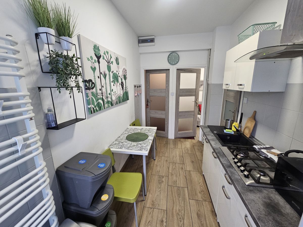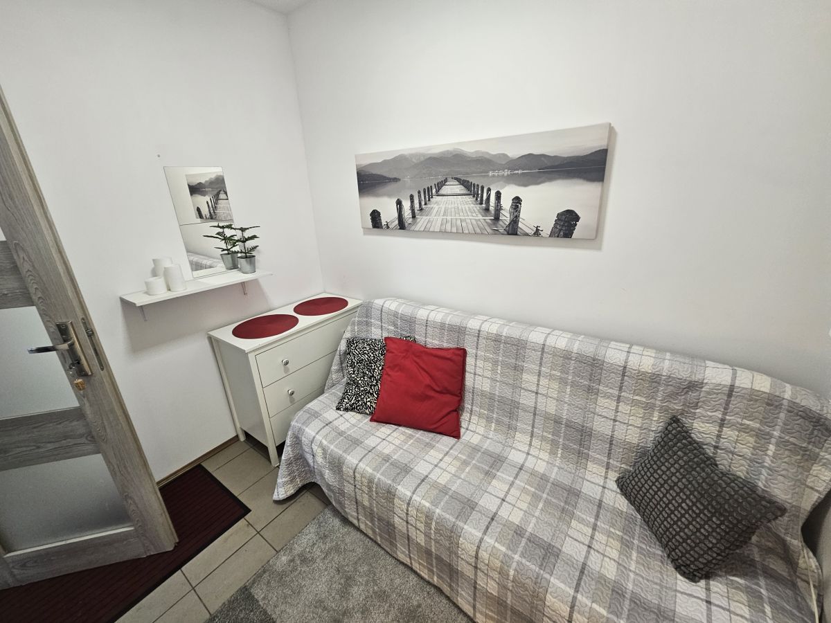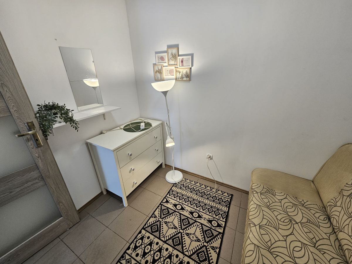 Mieszkanie składa się z dwóch pokoi, kuchni z jadalnią z aneksem kuchennym oraz łazienki. Mieszkanie całkowicie wyposażone i umeblowane. Do dyspozycji najemcy pościel, wyposażenie kuchni. W łazience kabina prysznicowa i pralka . Cena zawiera opłaty za wodę ciepłą i zimną, kanalizację, śmieci oraz ogrzewanie. POLECAM