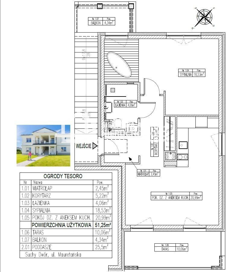 Do mieszkania przynależy TARAS (10,06m2),BALKON (4,34m2) i prywatne, zadaszone miejsce parkingowe.