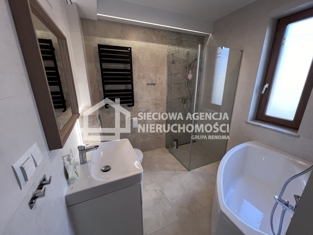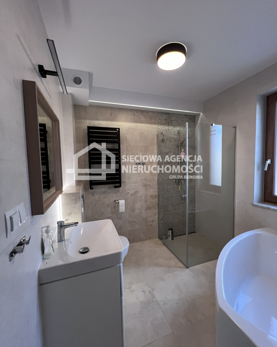 Standard wykończenia: podłogi-panele,gres;ściany-glazura,malowane.