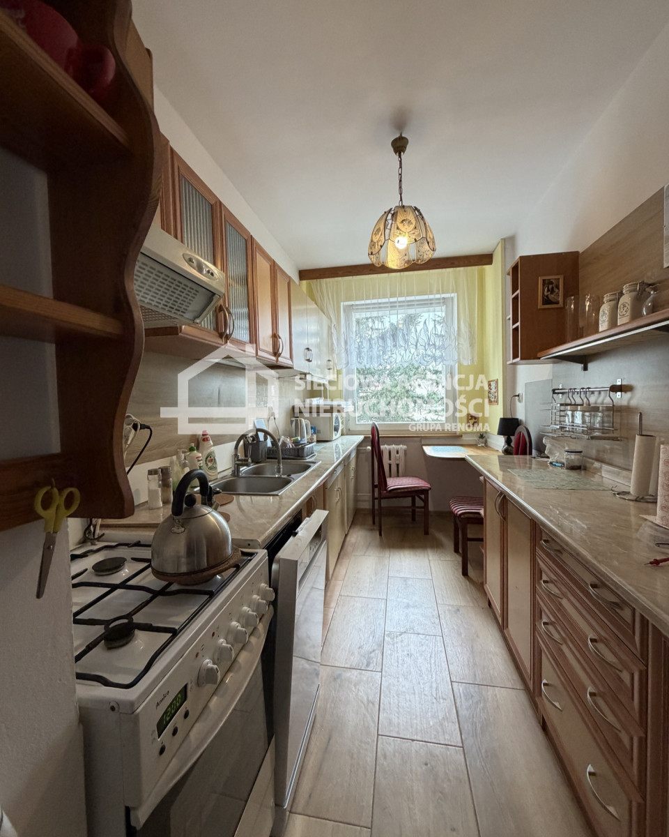 Nieruchomość o pow 59.61m2 składa się z: trzech niezależnych pokoi, oddzielnej kuchni z oknem, łazienki z wanną, toalety oraz przedpokoju z szafami i pawlaczami.