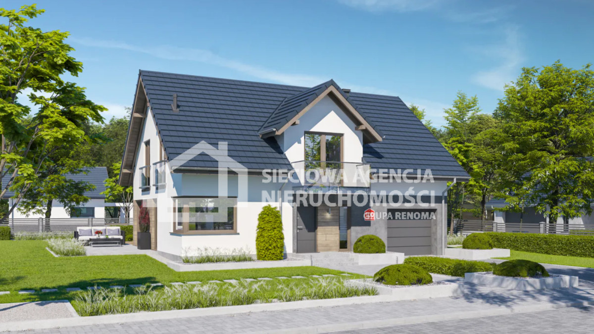 Działka o powierzchni 1.366m2 (w kształcie prostokąta) lekko nachylona, na której jest posadowiony dom 150 m2 I piętrowy, 4 pokoje (projekt domu Cyprysowa 100 z małymi zmianami, mniejsze okna na piętrze i przesunięta ścianka).
