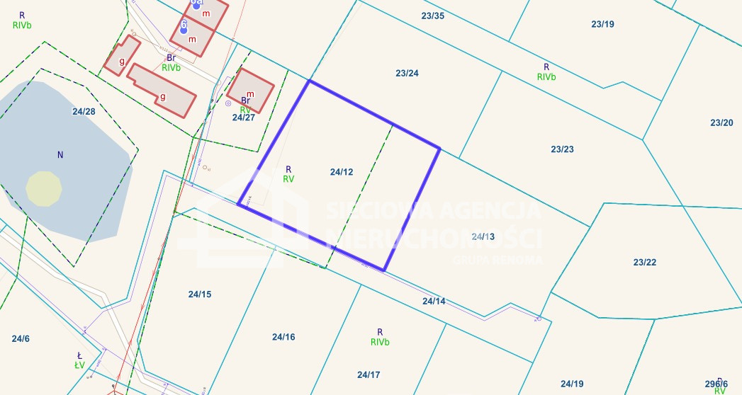 Działka jest duża, lekko nachylona, z pięknym widokiem na okolicę, przy działce znajduje się przyłącze wodociągowe.