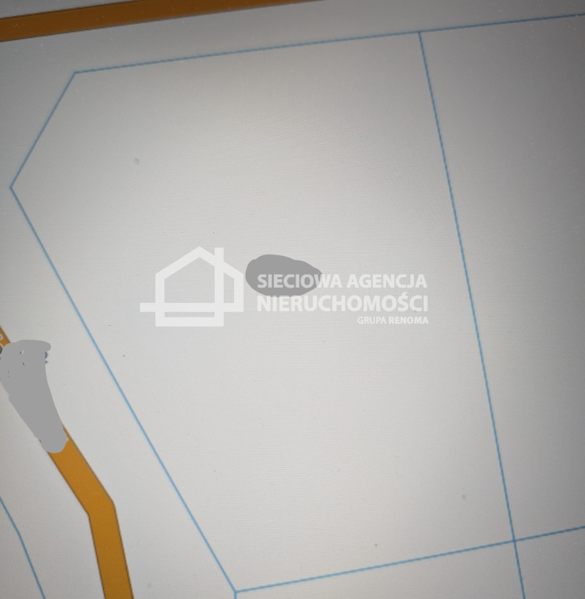 Działka lekko nachylona, zbliżona kształtem do trapezu, z pięknym widokiem na dolinę Raduni.