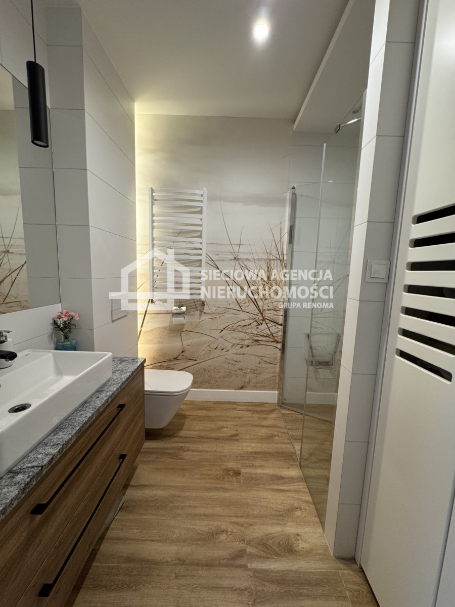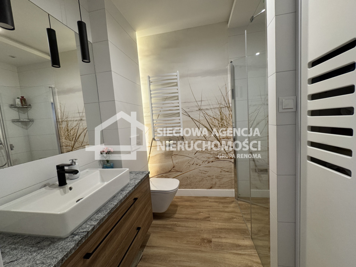Na sprzedaż 2 pokojowe mieszkanie o powierzchni 45,8 m2 z ogródkiem 82,14 m2 w Gdańsku przy ul. Kazimierza Wielkiego. Do mieszkania przynależy komórka lokatorska o powierzchni 7,34 m2. Dodatkowo płatne miejsce postojowe naziemne 25.000 zł. Lokal składa się salonu z aneksem kuchennym 25,47 m2, pokój- sypialnia 11,37 m2, łazienka z wc 5,11 m2 oraz 3,85 m2. Ogródek położony od strony południowo- zachodniej. Opłaty czynszowe latem 550 zł, zimą 740 zł.