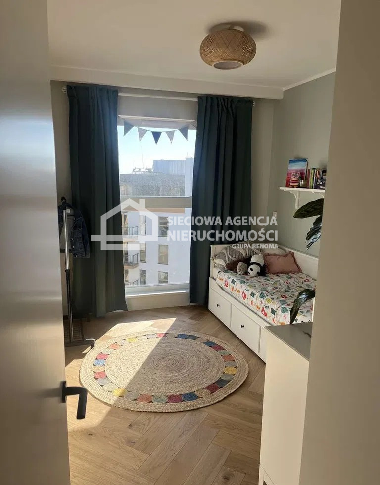 W skład mieszkania wchodzi salon z aneksem kuchennym, dwa pokoje, łazienka oraz przedpokój.