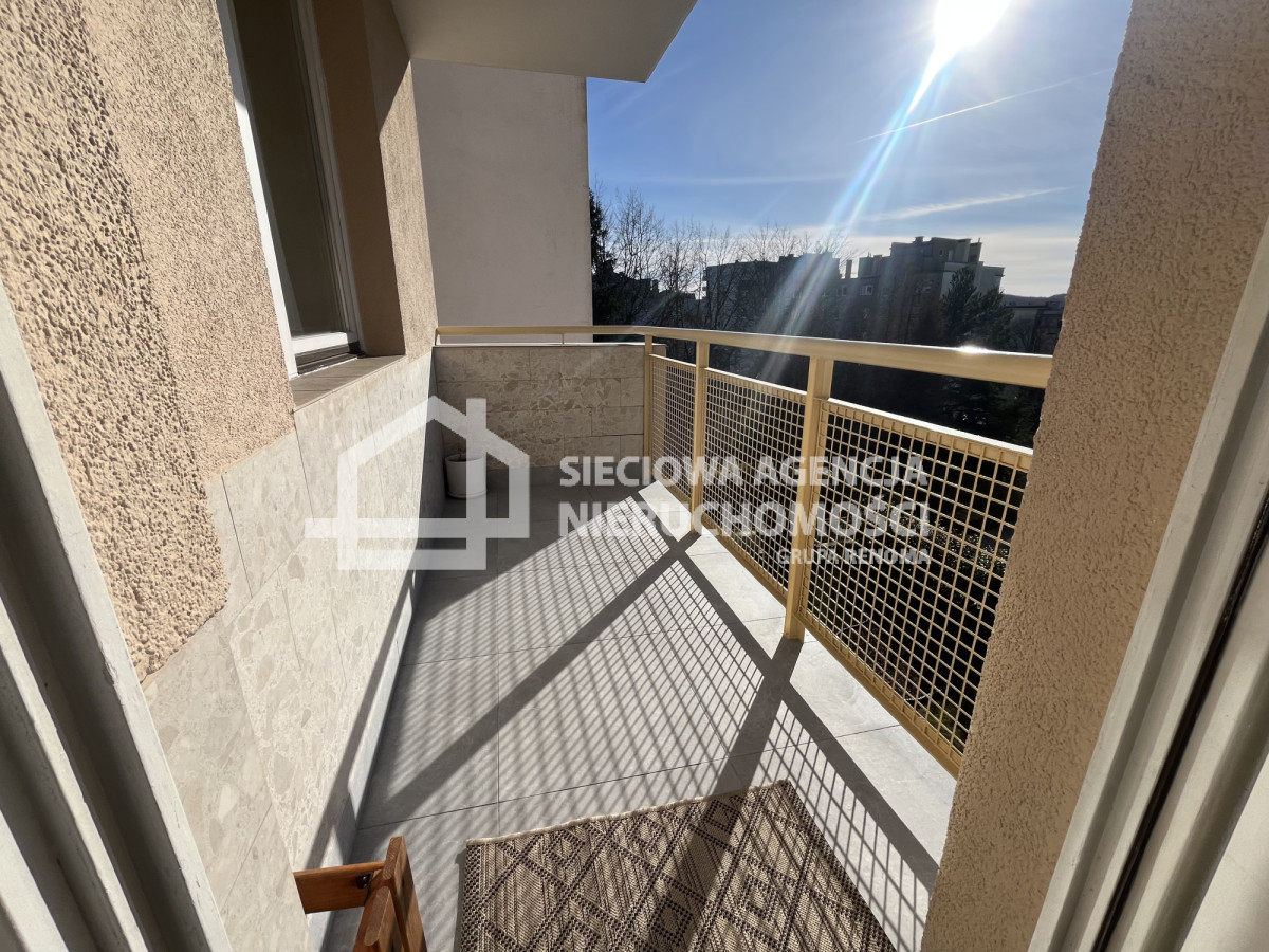 Ekspozycja okienna dwustronna: jedna sypialnia i kuchnia od strony wschodniej, salon z drugą sypialnią od strony zachodniej. Mieszkanie jest jasne i ciepłe.