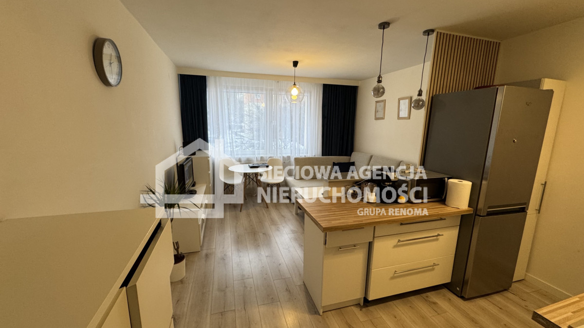 2 pokojowe mieszkanie o powierzchni 34,4 m², zlokalizowane w Gdyni, w dzielnicy Witomino, na 1 piętrze 4-piętrowego budynku.