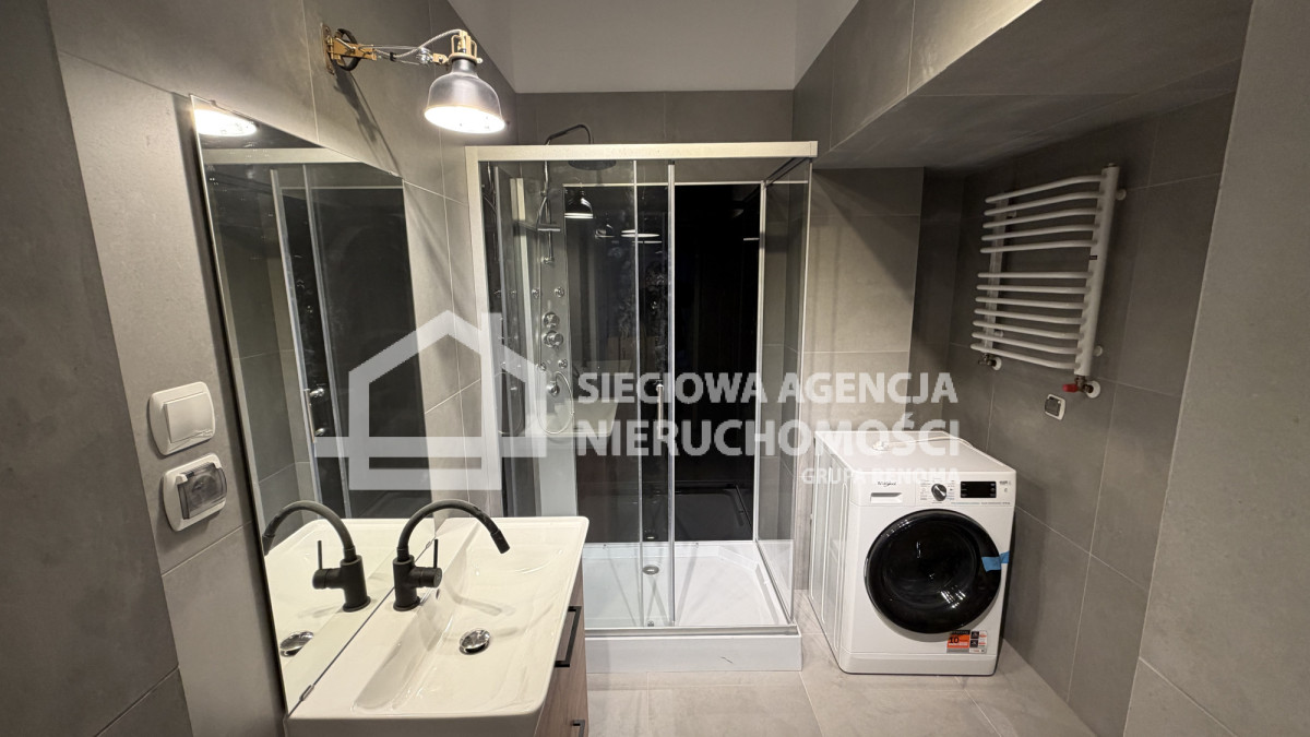 Standard wykończenia:na podłodze-panele,gres, ściany, glazura,malowane.