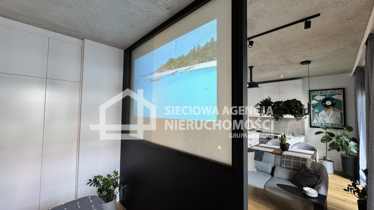W apartamencie znajduję się rzutnik, z którego można oglądać TV w salonie i sypialni.
