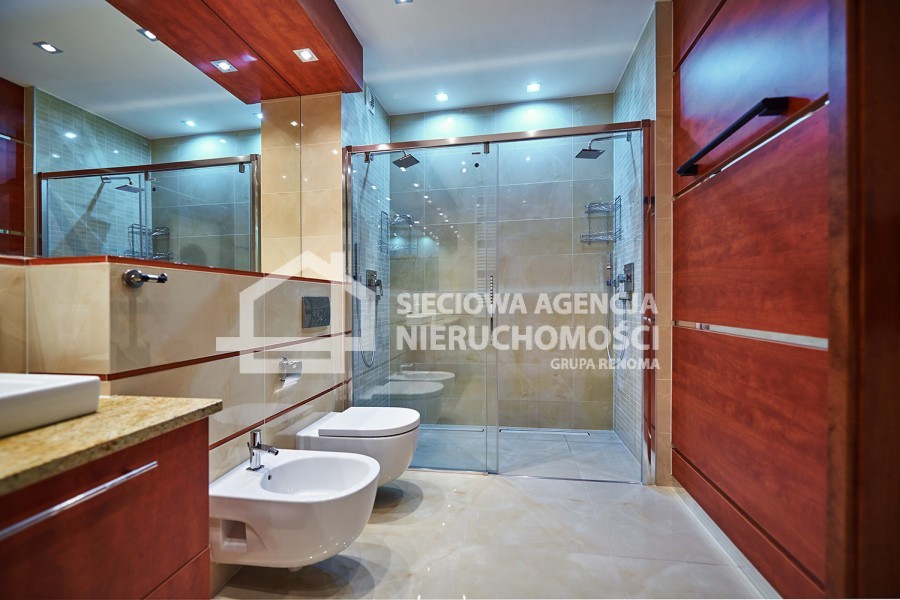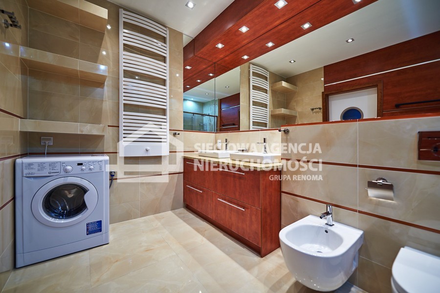 Wyższy standard wykończenia:na podłodze-deska,gres;ściany-glazura,malowane.