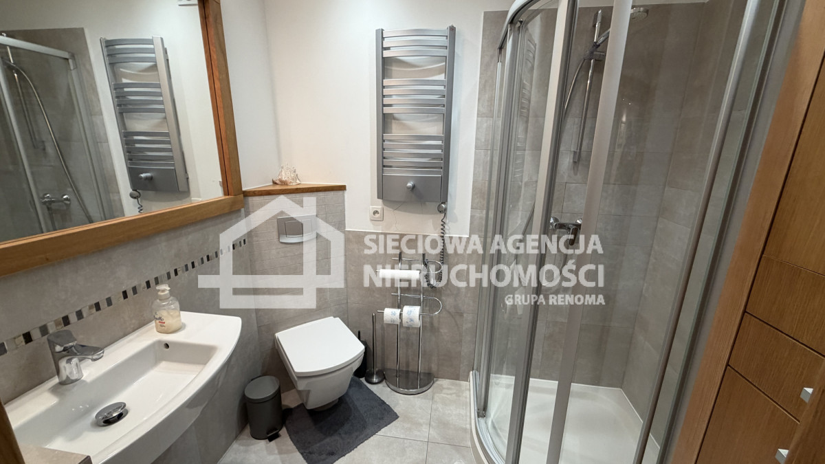 - łazienka z kabiną prysznicową i WC