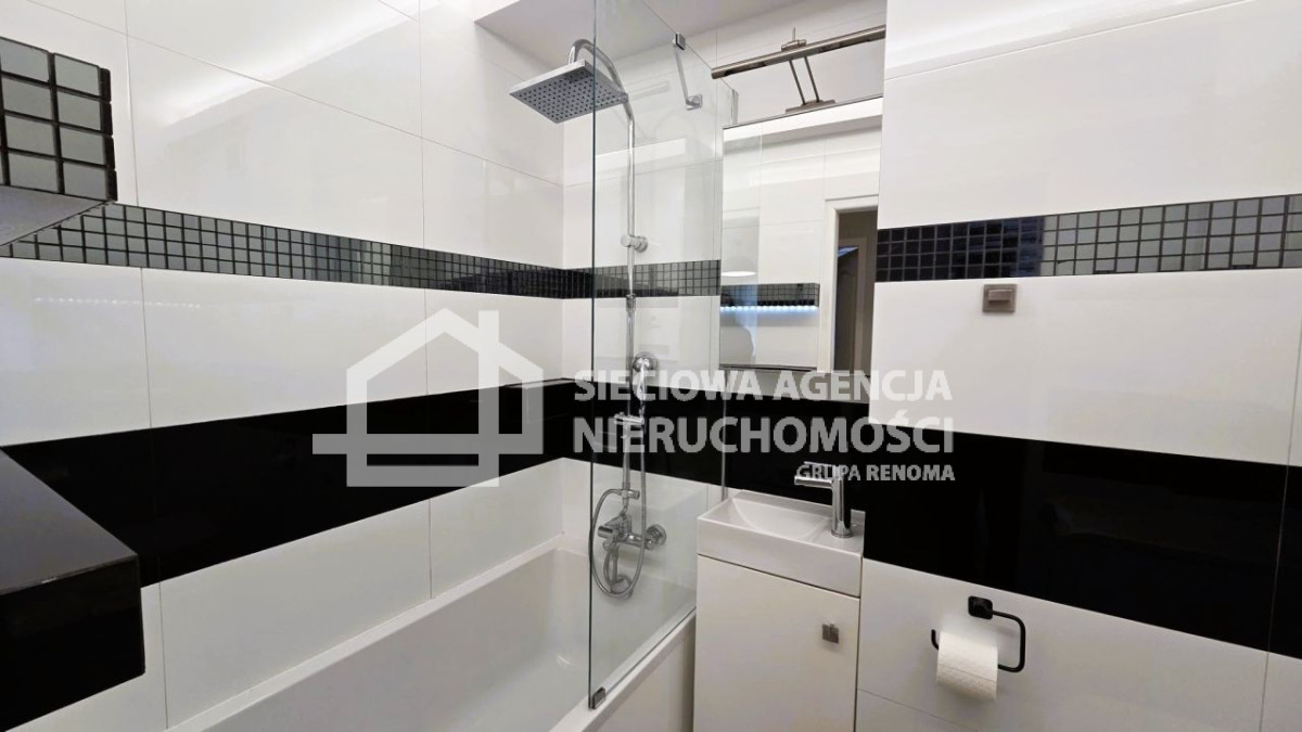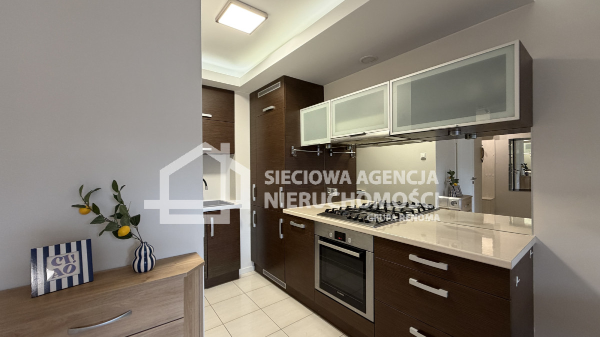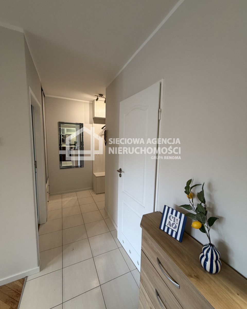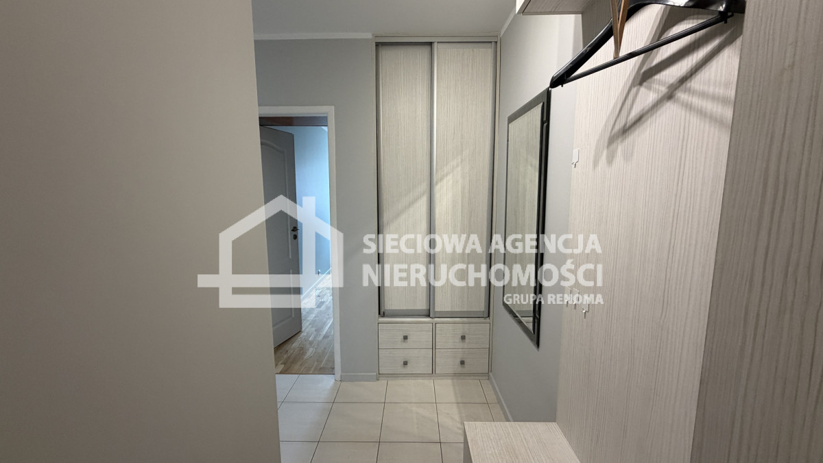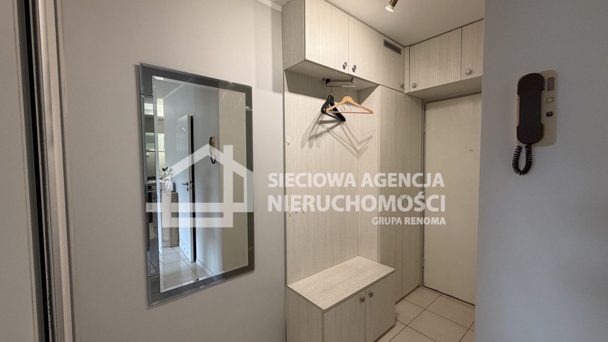 W skład mieszkania wchodzi salon z aneksem kuchennym, pokój z szafą, łazienka z wanną, szybą prysznicową z WC oraz przedpokój z