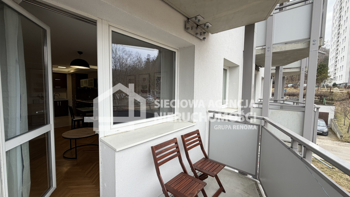 balkon a z niego widok na zieleń.Standard wykończenia:na podłodze-parkiet,gres;ściany-glazura,malowane.